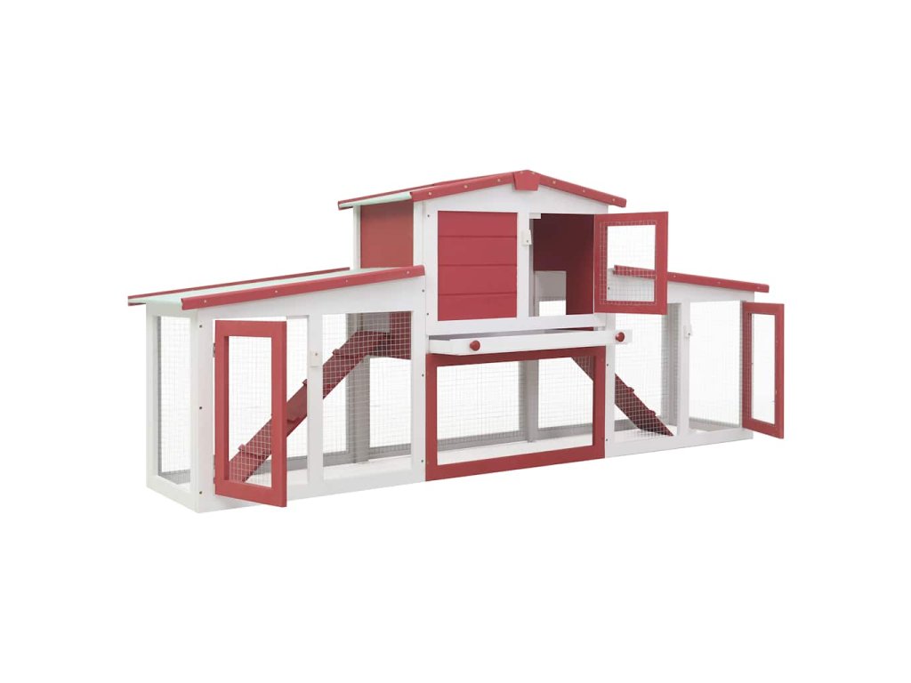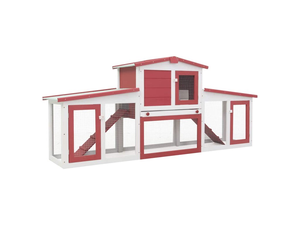 Velká venkovní králíkárna červeno-bílá 201 x 45 x 85 cm dřevo 170845