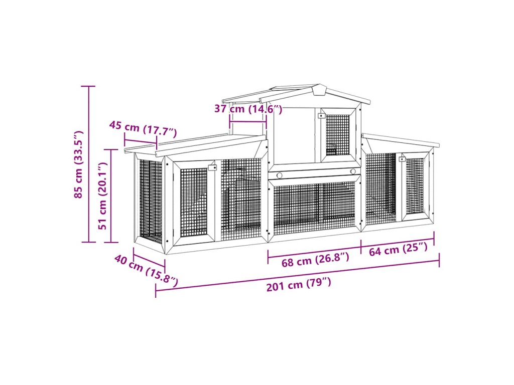 Tato luxusní dřevěná králíkárna poskytne vašim chlupáčům velké a útulné útočiště. Má 2 patra, a je tudíž dostatečně prostorná pro chov malých zvířat, zejména králíků. Najdete pro ni celou řadu využití – vaši mazlíčci si v ní mohou bezpečně hrát, proběhnout se nebo je můžete cvičit.
