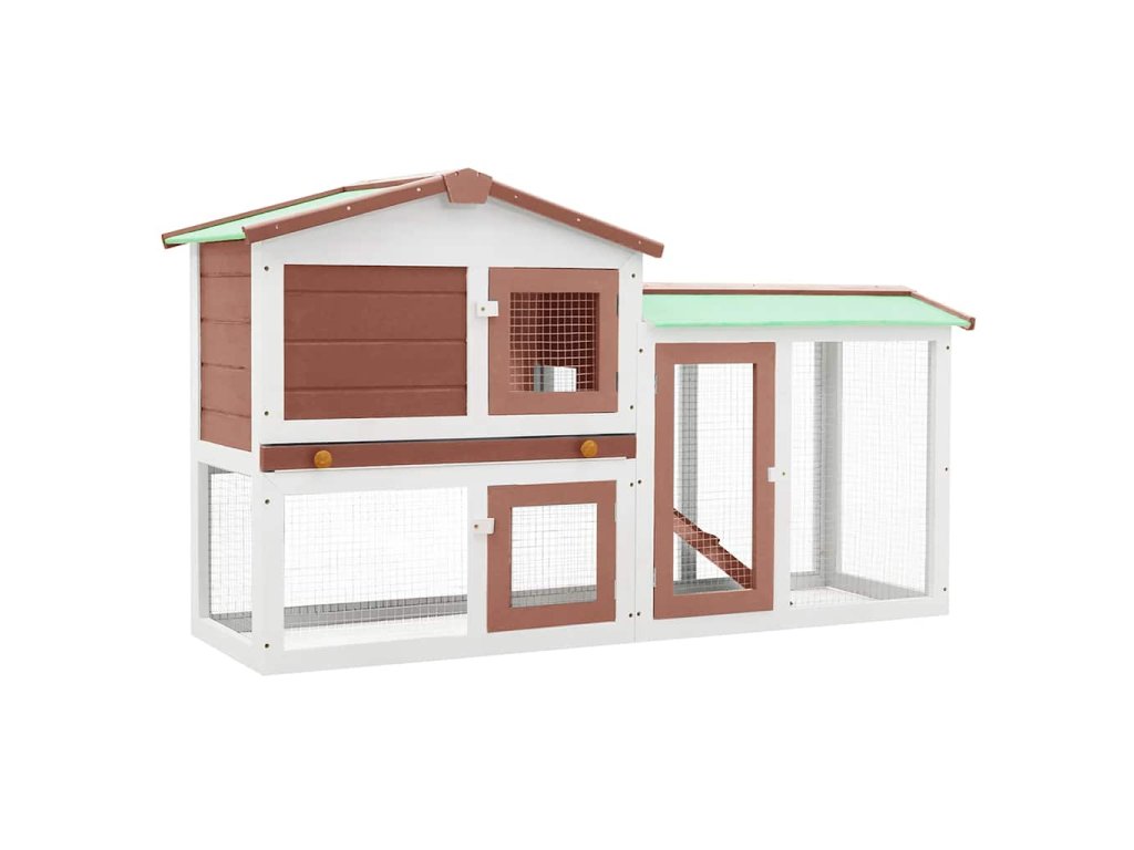 Velká venkovní králíkárna hnědo-bílá 145 x 45 x 84 cm dřevo 170841