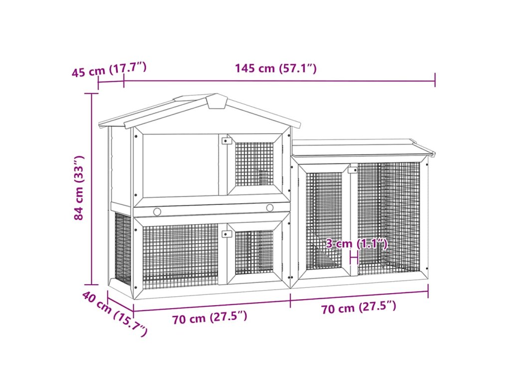 Tato luxusní dřevěná králíkárna poskytne vašim chlupáčům velké a útulné útočiště. Má 2 patra, a je tudíž dostatečně prostorná pro chov malých zvířat, zejména králíků. Najdete pro ni celou řadu využití – vaši mazlíčci si v ní mohou bezpečně hrát, proběhnout se nebo je můžete cvičit.