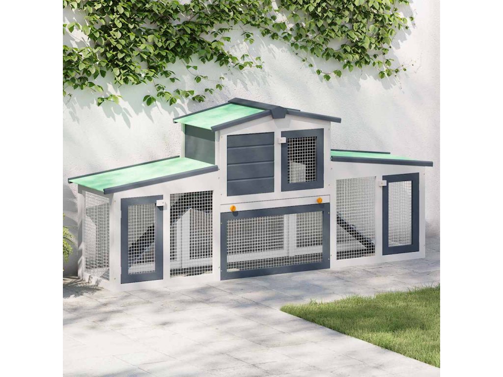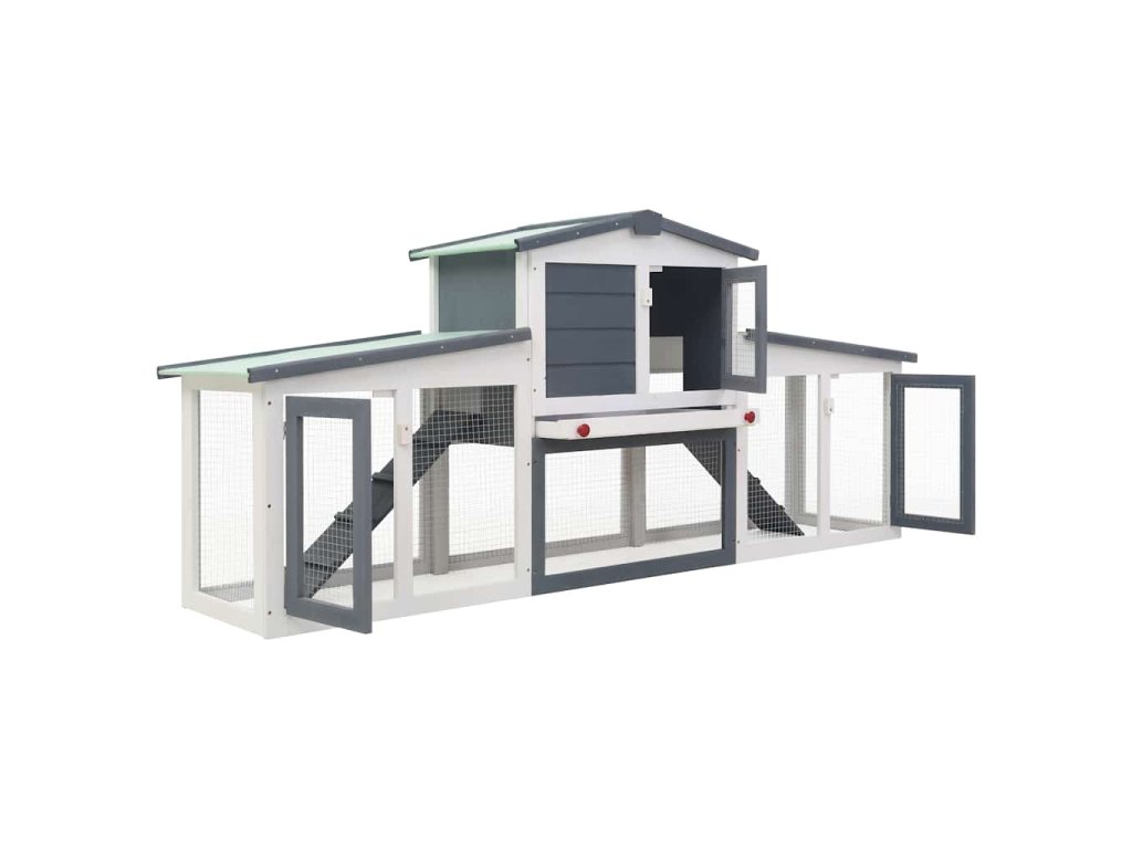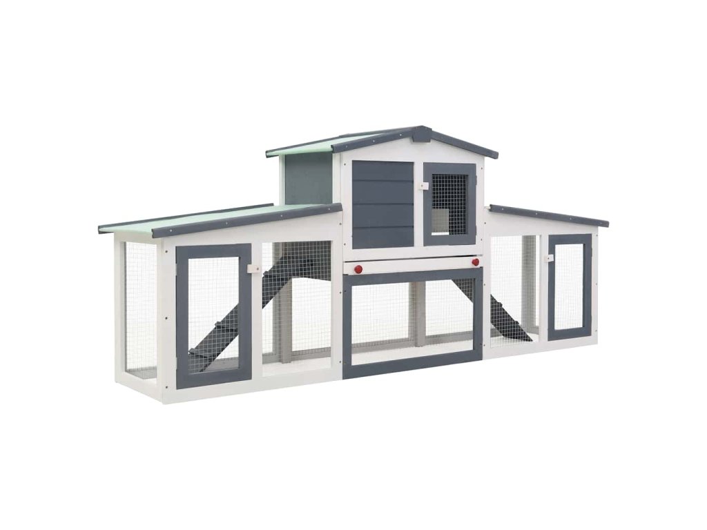 Velká venkovní králíkárna šedo-bílá 201 x 45 x 85 cm dřevo 170843