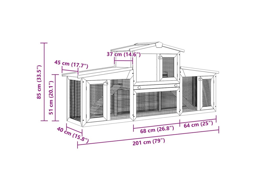 Tato luxusní dřevěná králíkárna poskytne vašim chlupáčům velké a útulné útočiště. Má 2 patra, a je tudíž dostatečně prostorná pro chov malých zvířat, zejména králíků. Najdete pro ni celou řadu využití – vaši mazlíčci si v ní mohou bezpečně hrát, proběhnout se nebo je můžete cvičit.