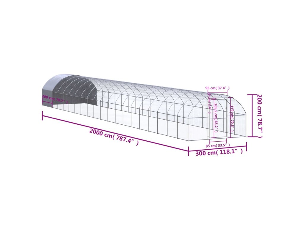 Venkovní klec pro kuřata 3 x 20 x 2 m pozinkovaná ocel 3095479