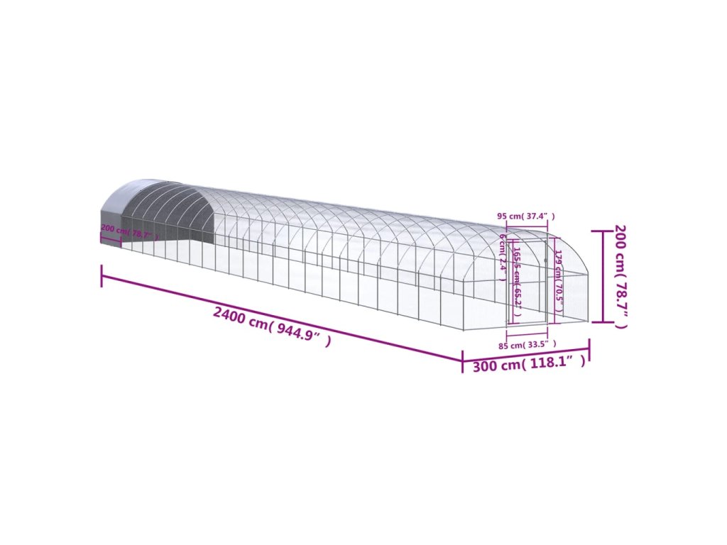 Venkovní klec pro kuřata 3 x 24 x 2 m pozinkovaná ocel 3095480