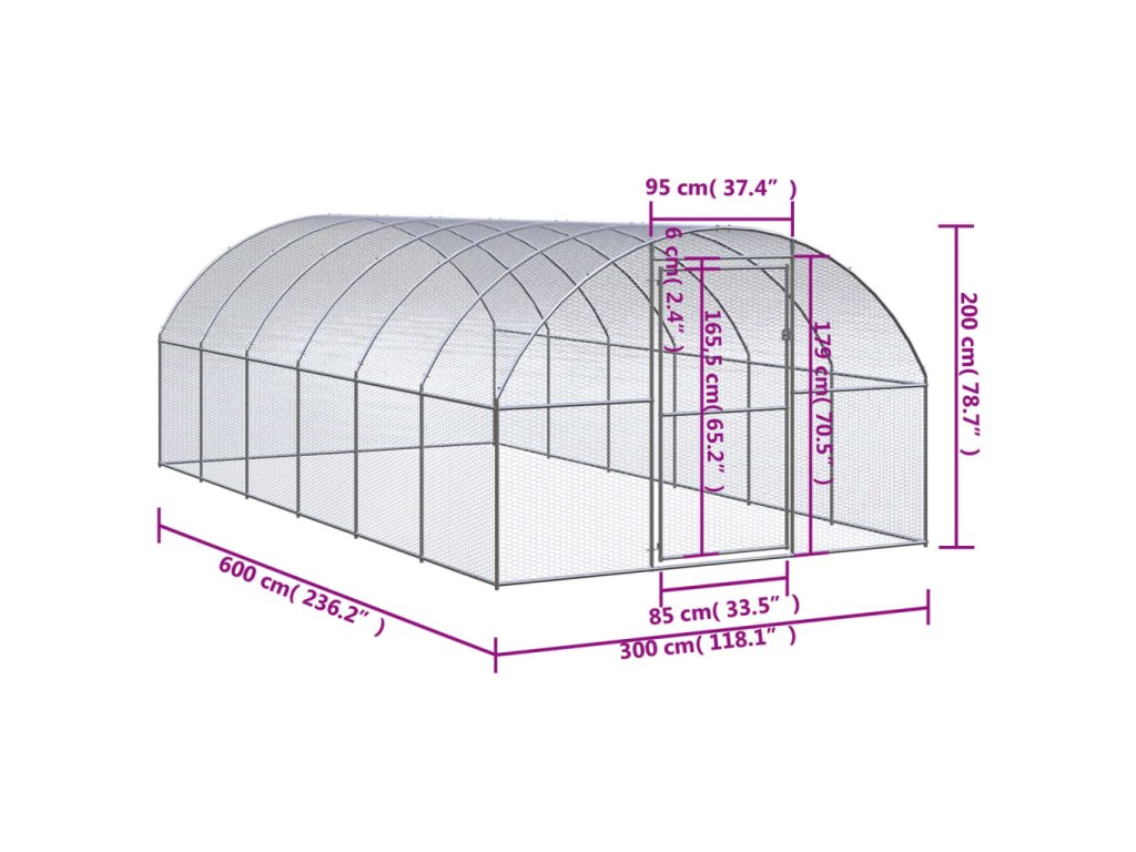 Venkovní klec pro kuřata 3 x 6 x 2 m pozinkovaná ocel 3095465