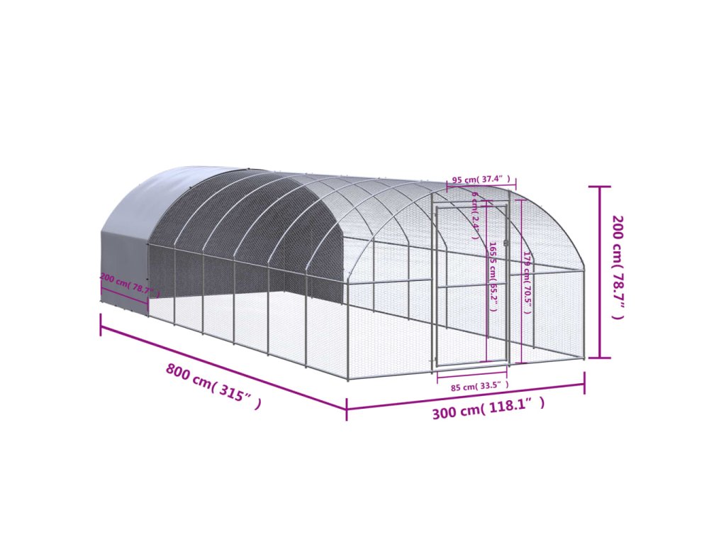 Venkovní klec pro kuřata 3 x 8 x 2 m pozinkovaná ocel 3095475