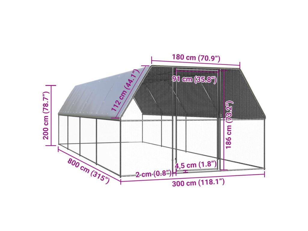 Venkovní klec pro kuřata 3 x 8 x 2 m pozinkovaná ocel 3154378