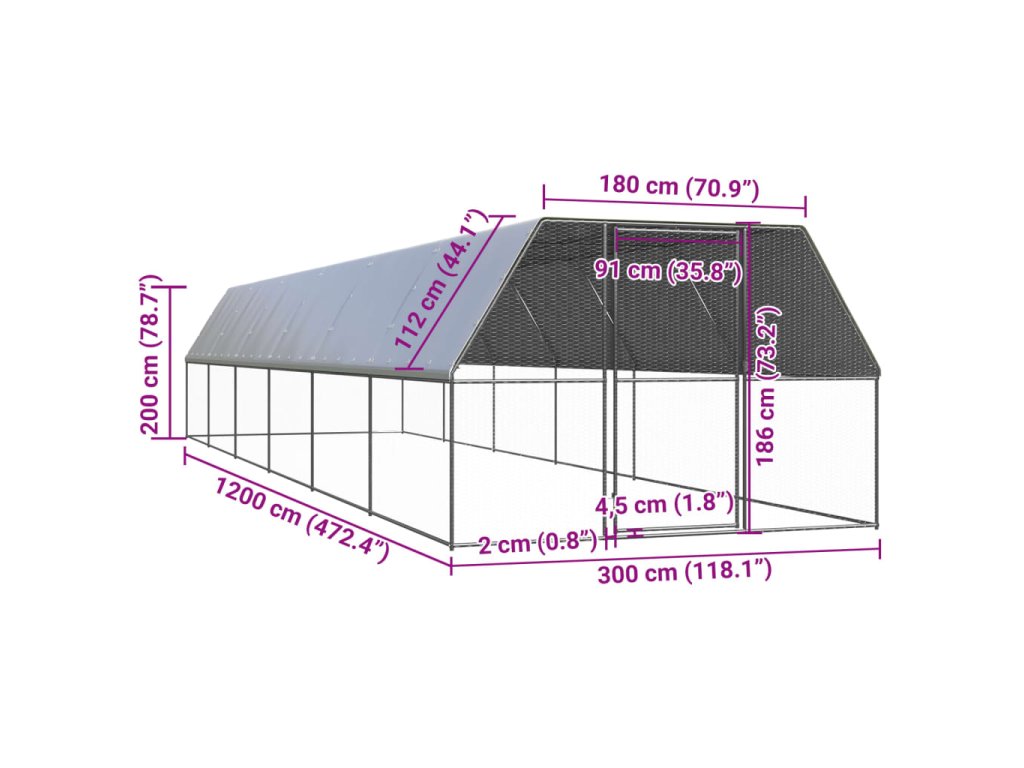 Venkovní klec pro kuřata 3x12x2 m pozinkovaná ocel 3154380