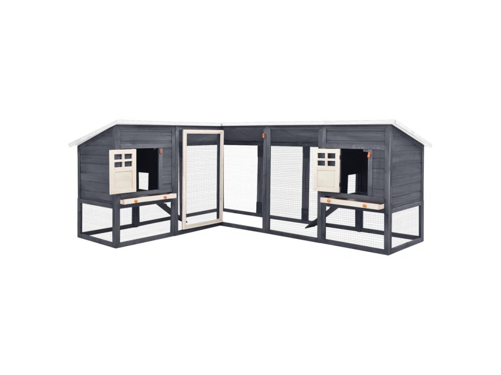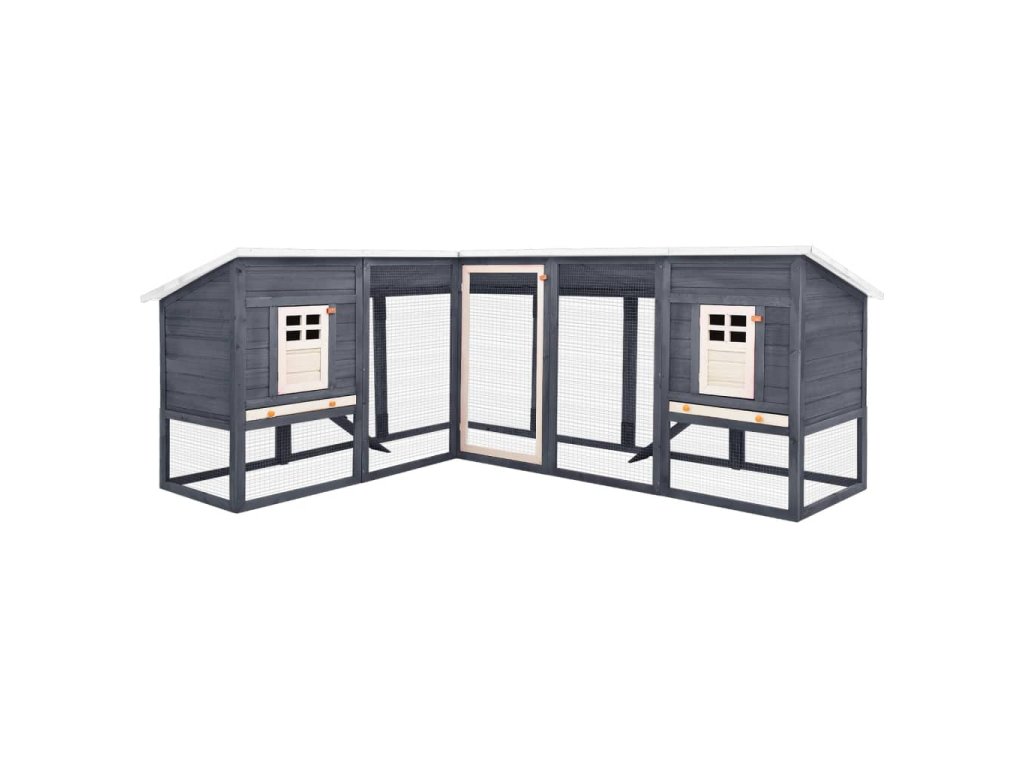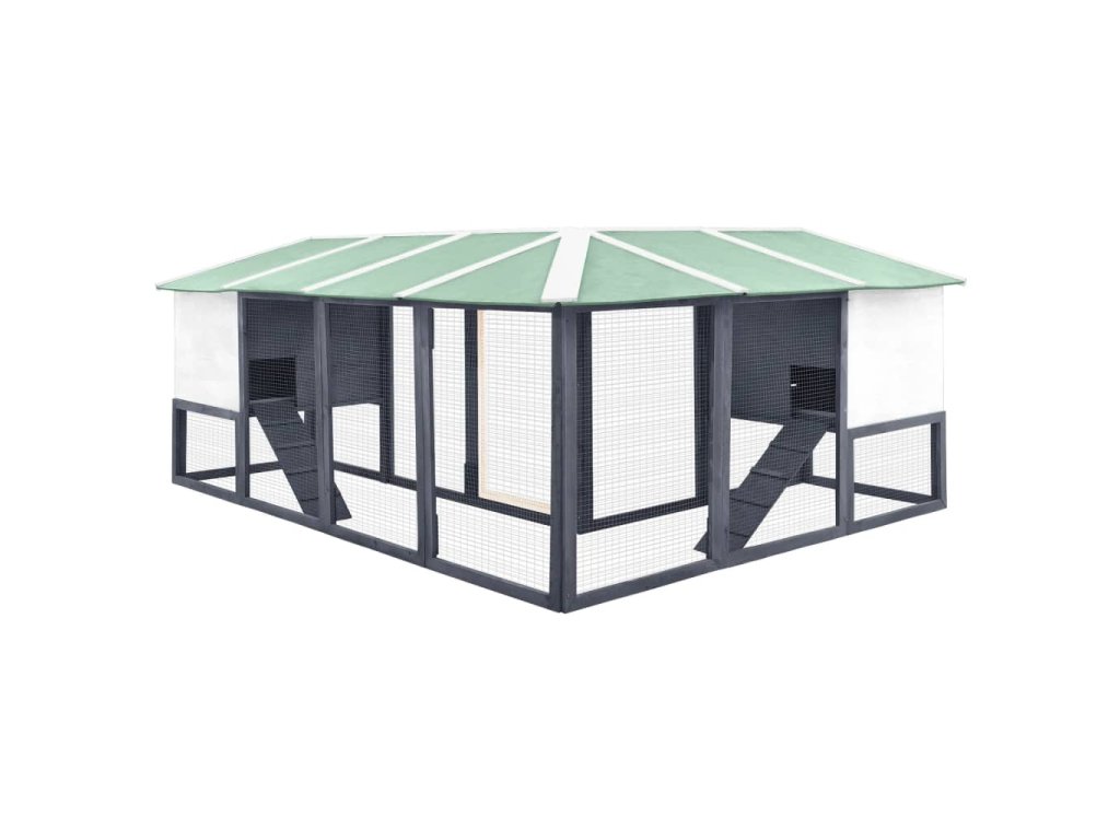 Venkovní králíkárna s výběhem šedo-bílá masivní jedlové dřevo 170873