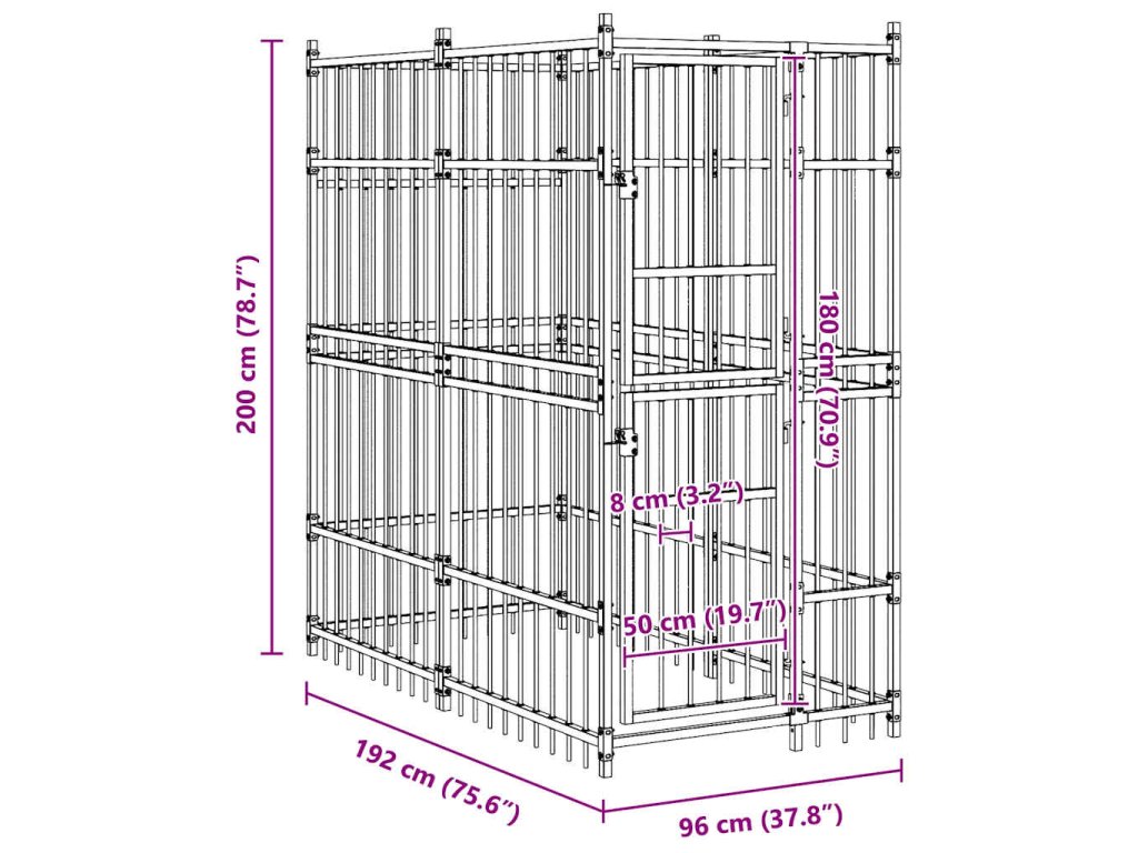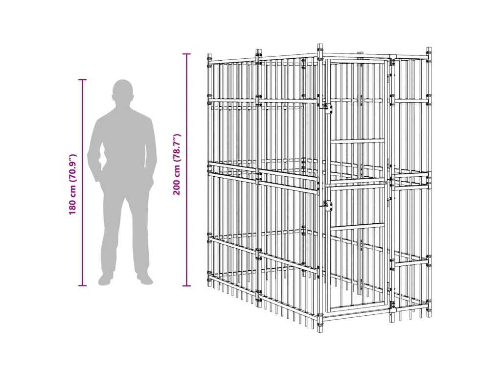 Psí kotec poskytne vašim psům spoustu prostoru k pohybu. Stěny z ocelových mříží předchází neplechám a neočekávaným nehodám a pouští dovnitř čerstvý vzduch. Vzhledem k jeho robustní a pevné konstrukci z práškově lakované oceli je kotec velmi odolný a vydrží vám sloužit po dlouhá léta. Dvířka s panty jsou opatřená uzamykatelnou západkou, aby vašim pejskům zaručila mimořádné bezpečí.