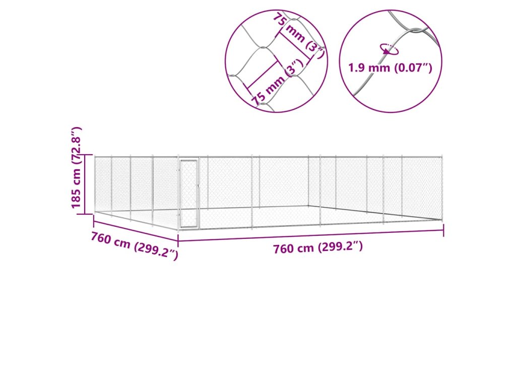 Venkovní psí kotec pozinkovaná ocel 760 x 760 x 185 cm 145037