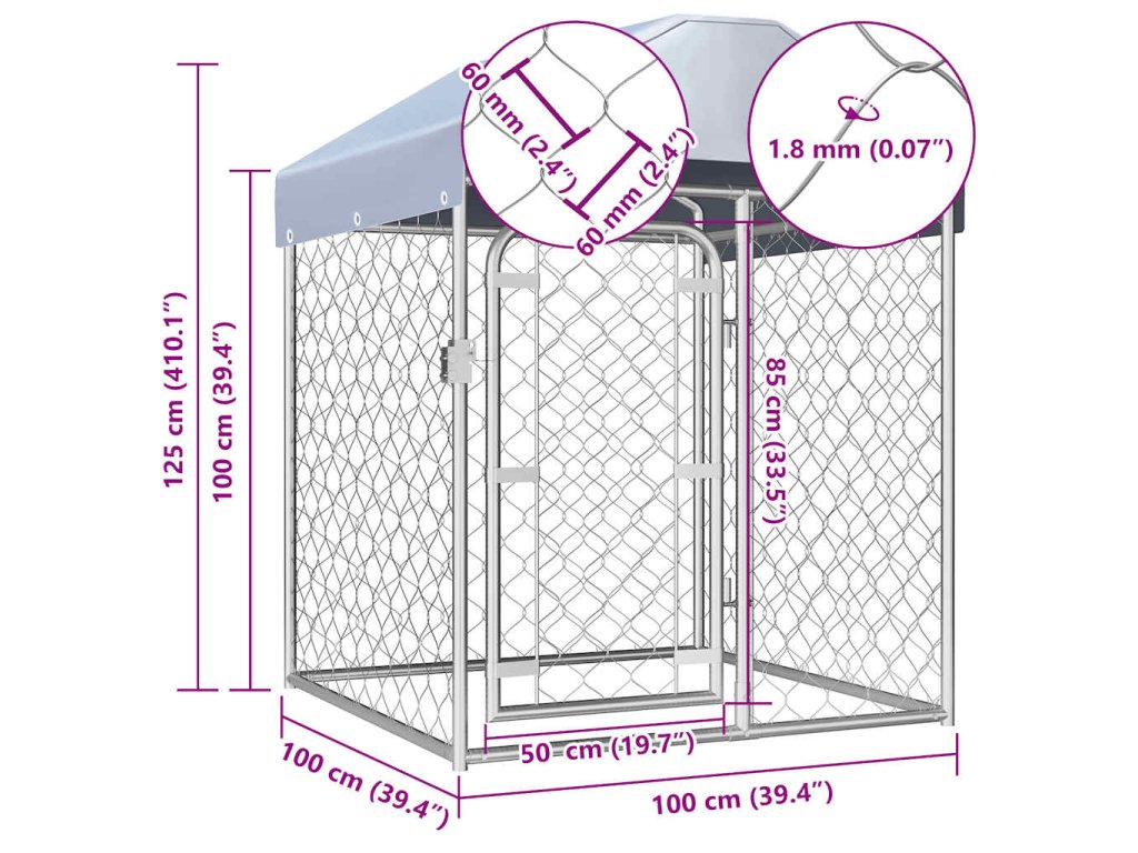 Venkovní psí kotec se střechou 100 x 100 x 125 cm 144491