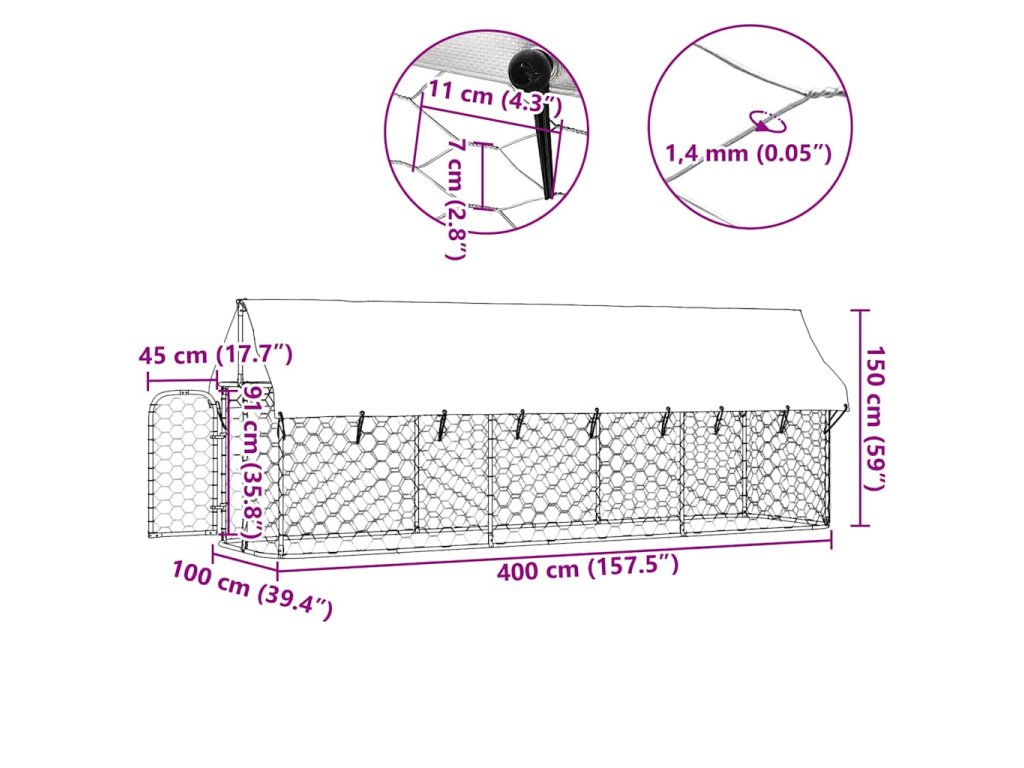 Venkovní psí kotec se střechou 400 x 100 x 150 cm 171497