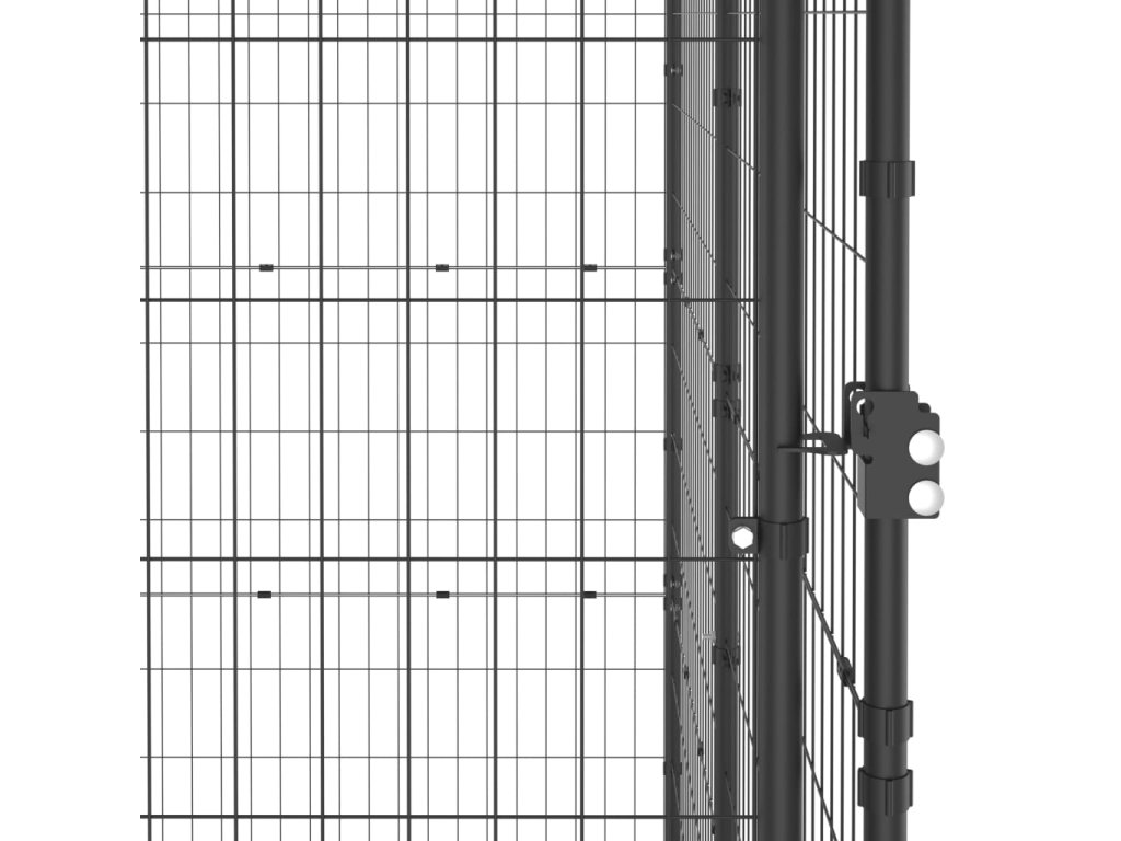 Tento psí kotec poskytuje dostatek prostoru pro cvičení. Pletivo po celém obvodu pomáhá předcházet neplechám a neočekávaným nehodám a zároveň umožňuje větrání. Díky robustní ocelové konstrukci s práškovým nástřikem je tento psí kotec odolný a vyrobený pro dlouhou životnost. Součástí je i vrchní stříška z PE, která je voděodolná a odolná vůči UV záření. Dveře s výklopnými dveřmi a uzamykatelným západkovým systémem zajišťují vašim psům větší bezpečnost.