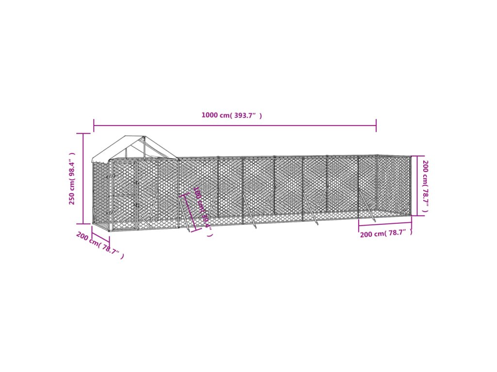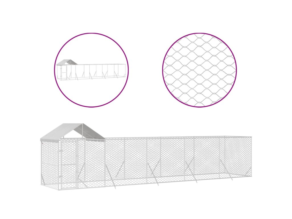 Venkovní psí kotec se střechou stříbrný 10 x 2 x 2,5 m ocel 3190468