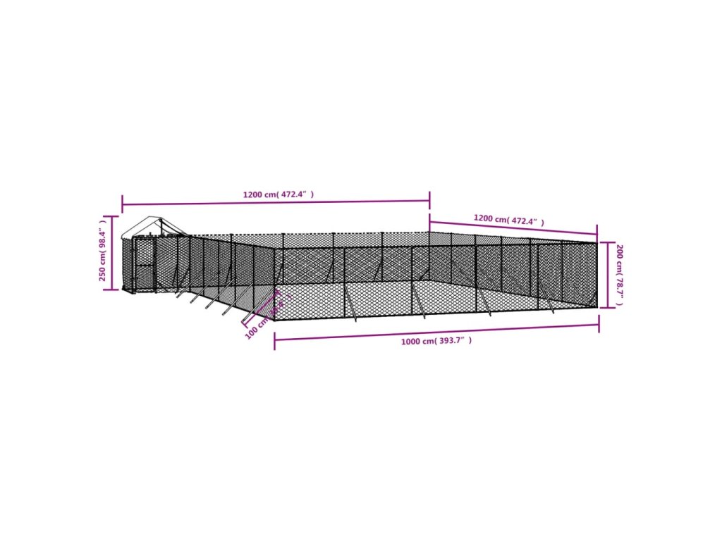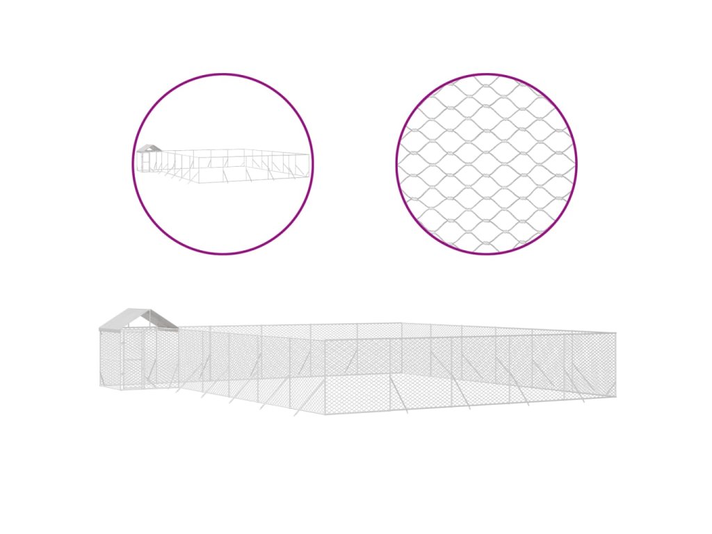 Venkovní psí kotec se střechou stříbrný 12 x 12 x 2,5 m ocel 3190474