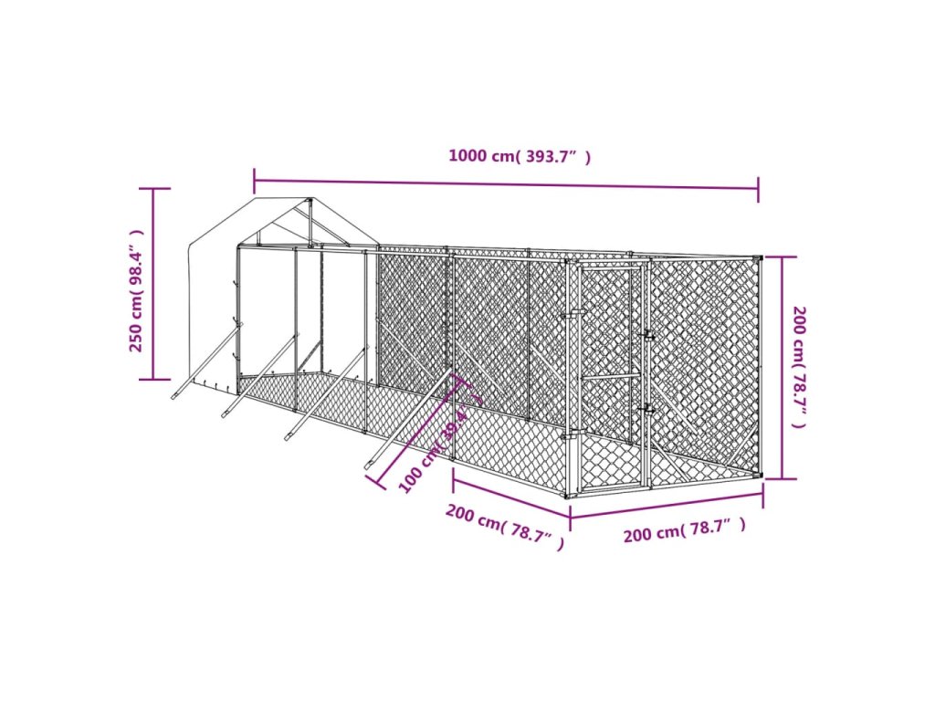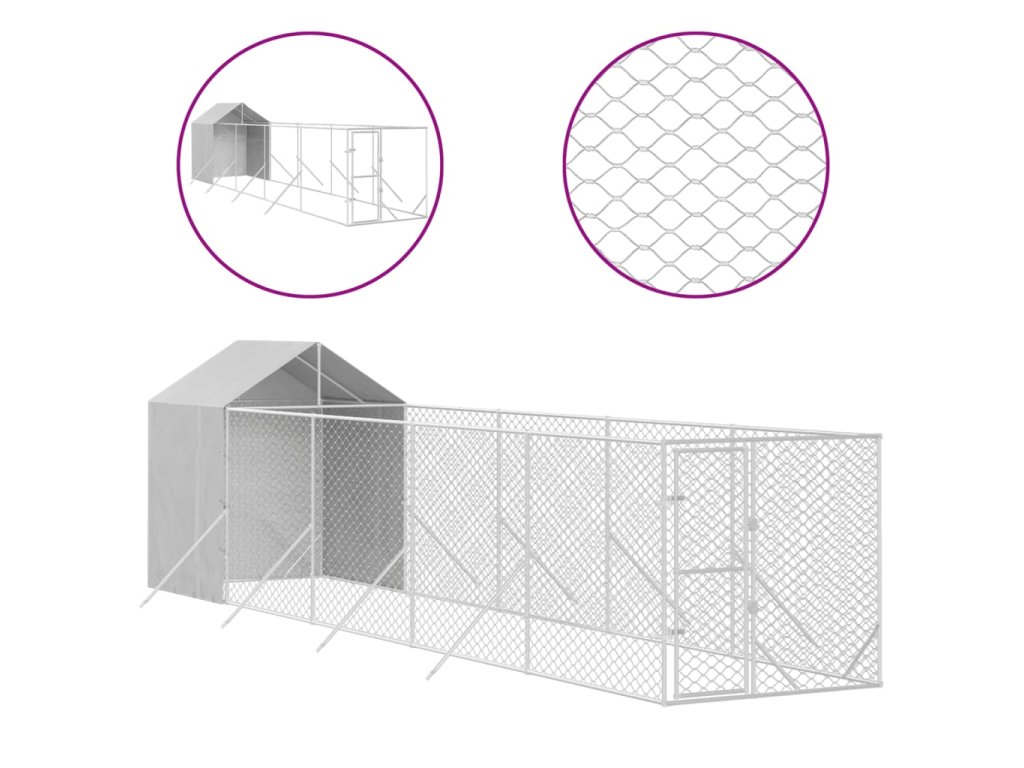 Venkovní psí kotec se střechou stříbrný 2 x 10 x 2,5 m ocel 3190476