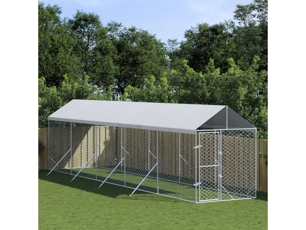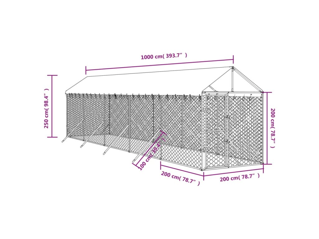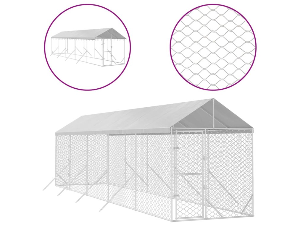 Venkovní psí kotec se střechou stříbrný 2 x 10 x 2,5 m ocel 3190484