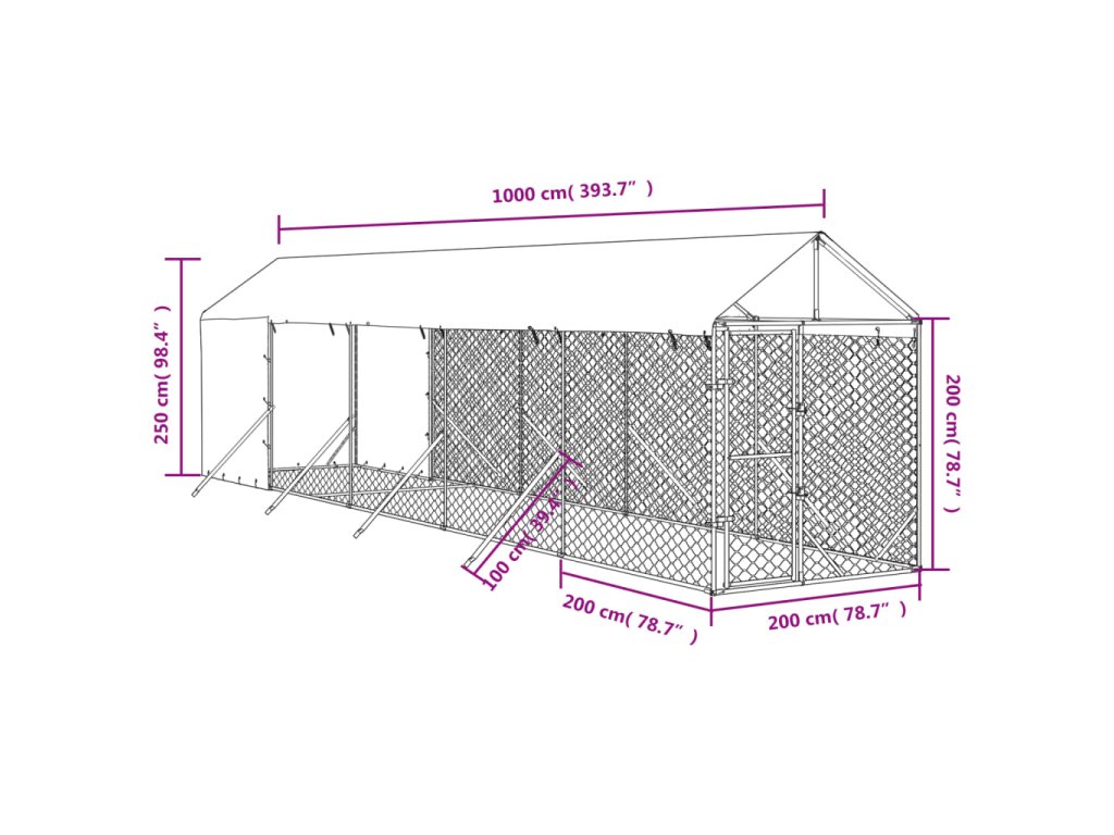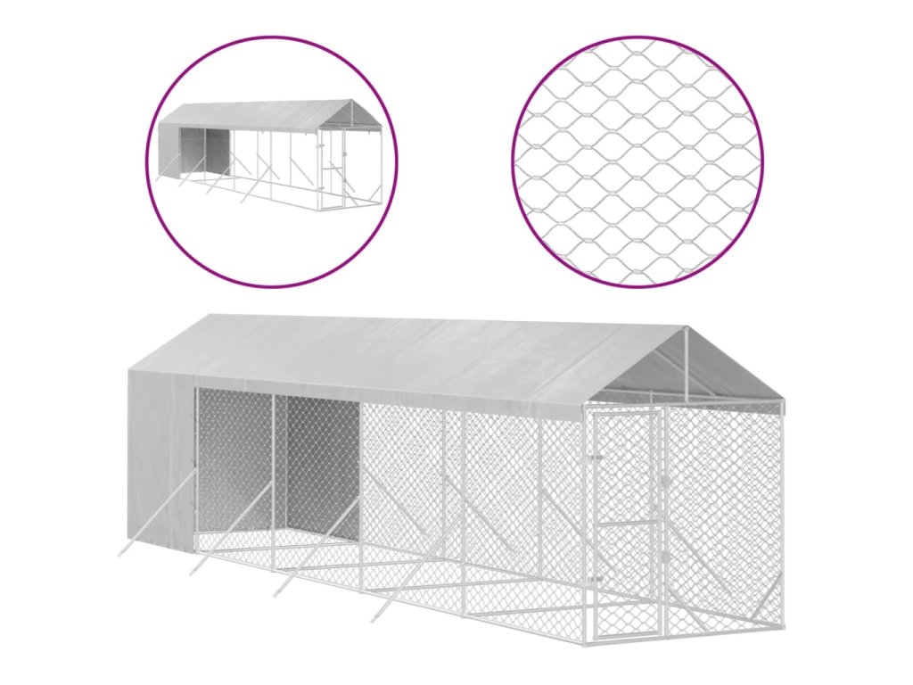 Venkovní psí kotec se střechou stříbrný 2 x 10 x 2,5 m ocel 3190492