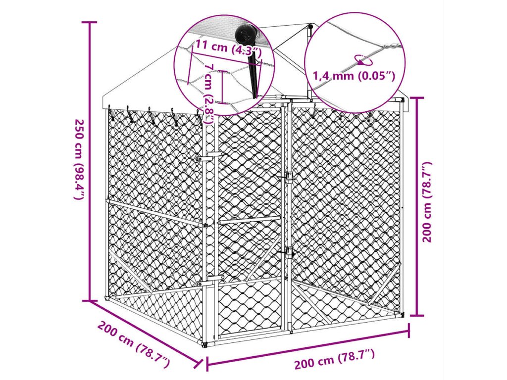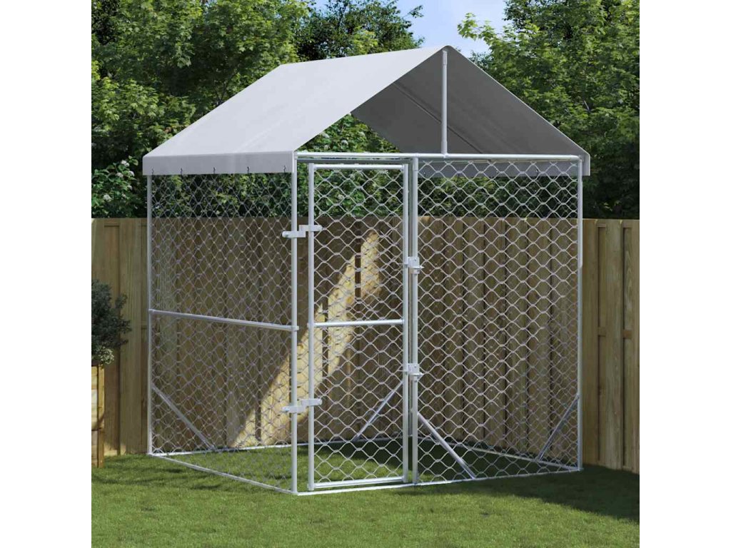 Venkovní psí kotec se střechou stříbrný 2 x 2 x 2,5 m ocel 153675