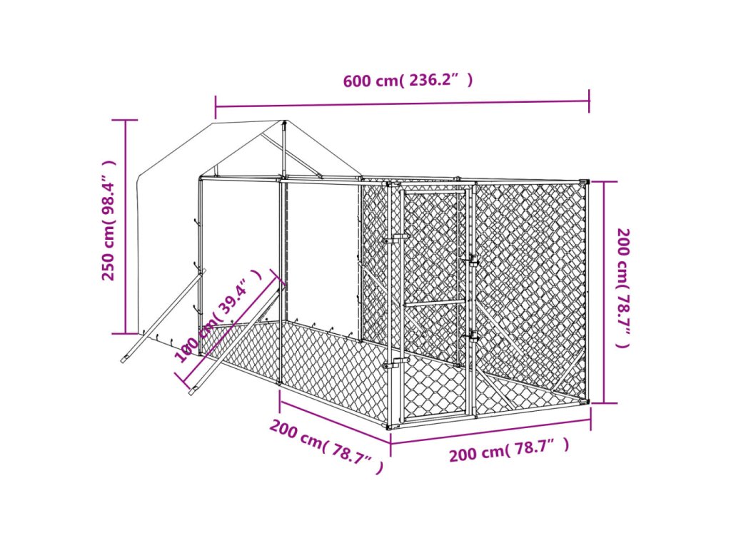 Venkovní psí kotec se střechou stříbrný 2 x 6 x 2,5 m ocel 3190475