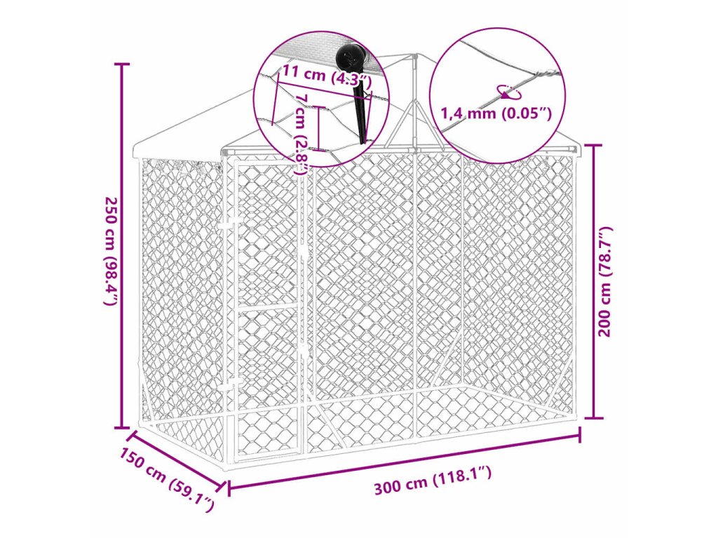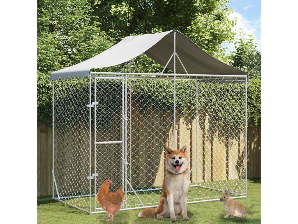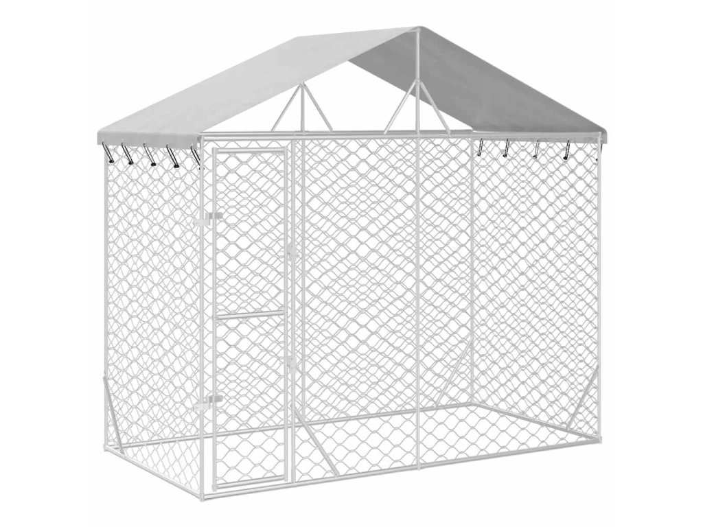 Venkovní psí kotec se střechou stříbrný 3 x 1,5 x 2,5 m ocel 153680