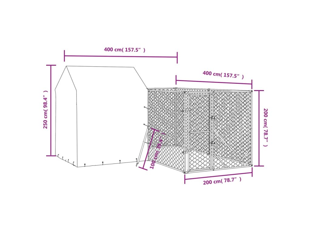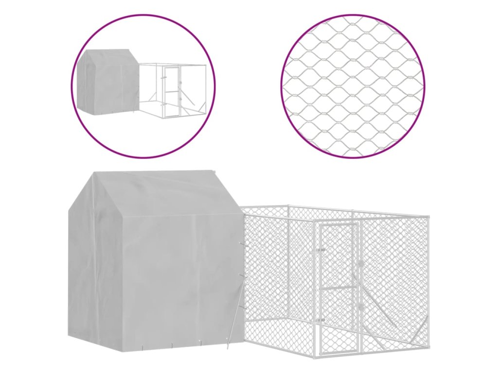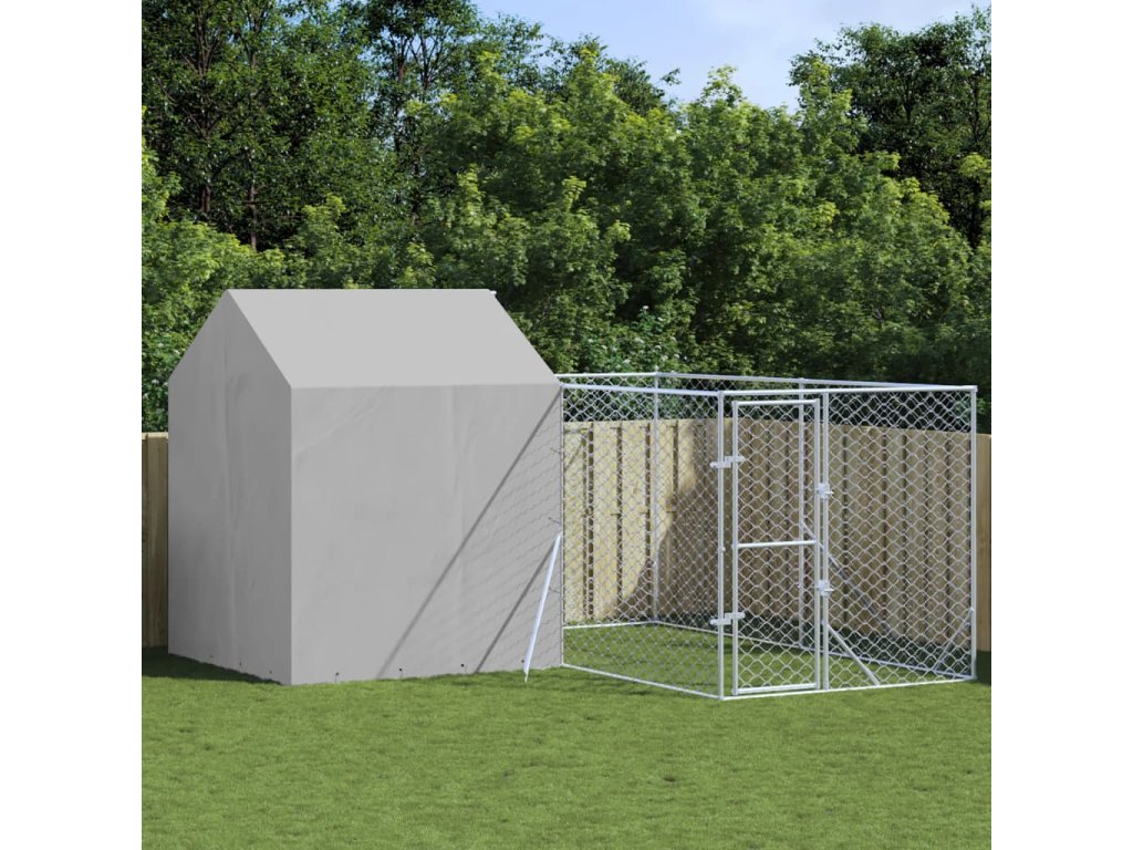 Venkovní psí kotec se střechou stříbrný 4 x 2 x 2,5 m ocel 3190478