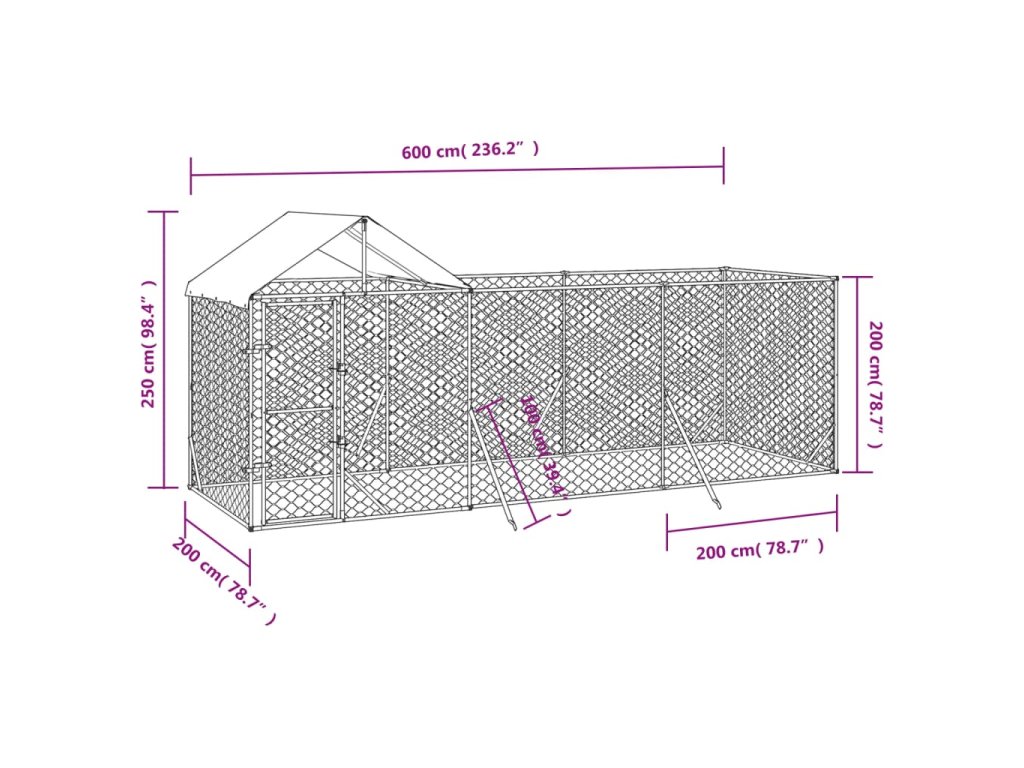 Venkovní psí kotec se střechou stříbrný 6 x 2 x 2,5 m ocel 3190467