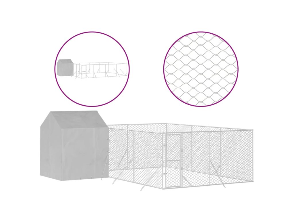 Venkovní psí kotec se střechou stříbrný 6 x 6 x 2,5 m ocel 3190479