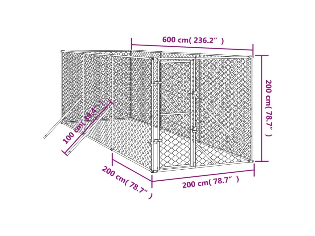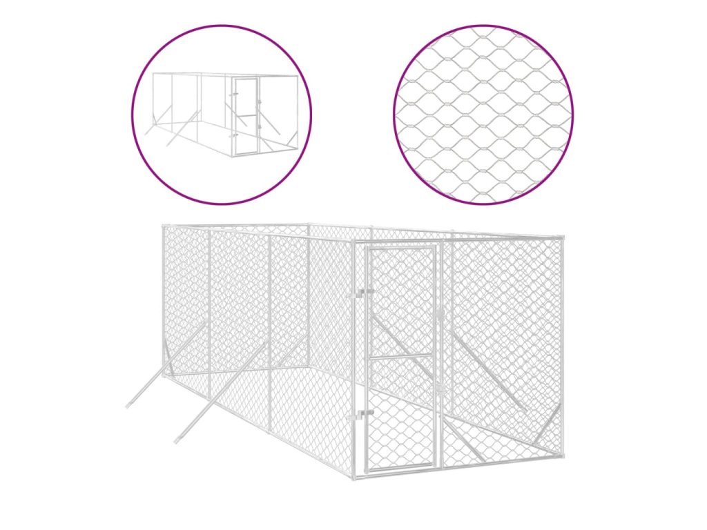 Venkovní psí kotec stříbrný 2 x 6 x 2 m pozinkovaná ocel 3190452
