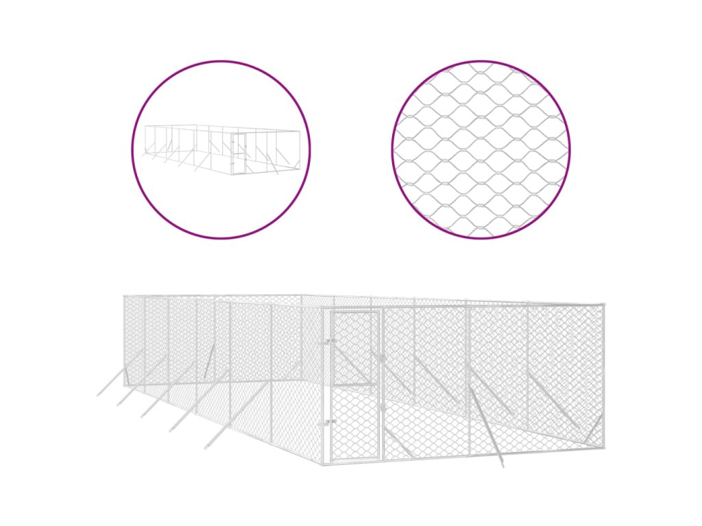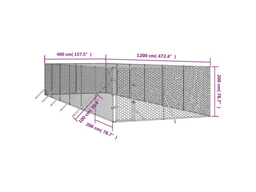 Venkovní psí kotec stříbrný 4 x 12 x 2 m pozinkovaná ocel 3190457