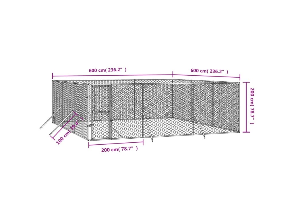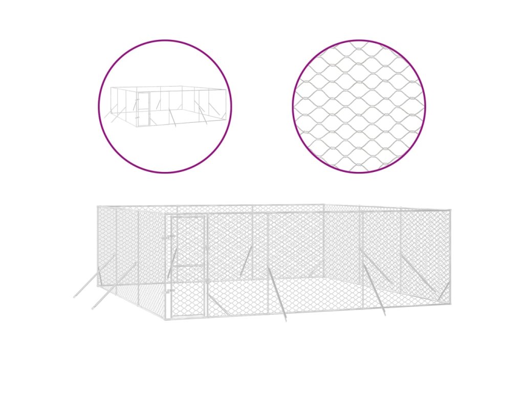 Venkovní psí kotec stříbrný 6 x 6 x 2 m pozinkovaná ocel 3190460