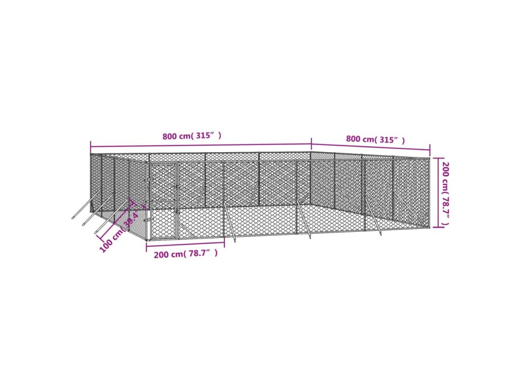 Venkovní psí kotec stříbrný 8 x 8 x 2 m pozinkovaná ocel 3190464