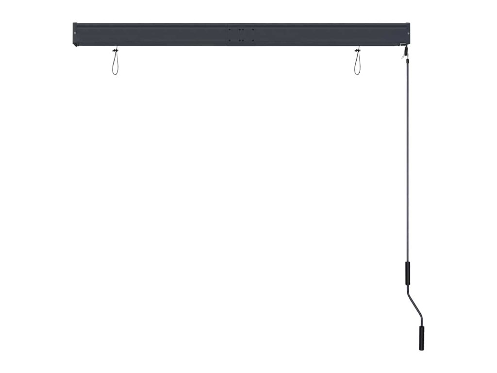 Tato vertikální markýza je vyrobená z prodyšné polyesterové látky potažené vrstvou PA, tudíž umožňuje dobré proudění vzduchu a přitom pohltí většinu škodlivého záření. Přes den vám také zajistí soukromí na terase, zahradě či v jiném venkovním prostředí. Přední tyč z hliníku a ocelová kazeta zabraňují sesouvání a prohýbání rolety. Zatahovat a vytahovat ji můžete pomocí ručního klikového mechanismu.