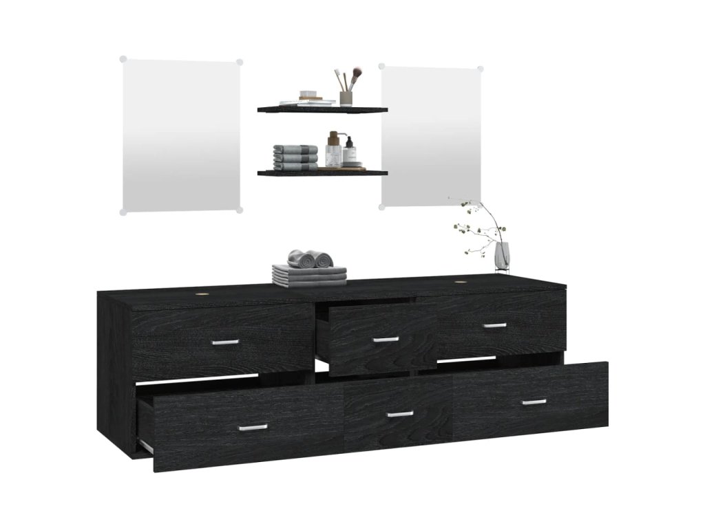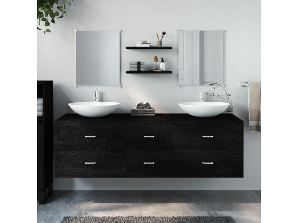 vidaXL 5dílná koupelnová sestava černá kompozitní dřevo 242563