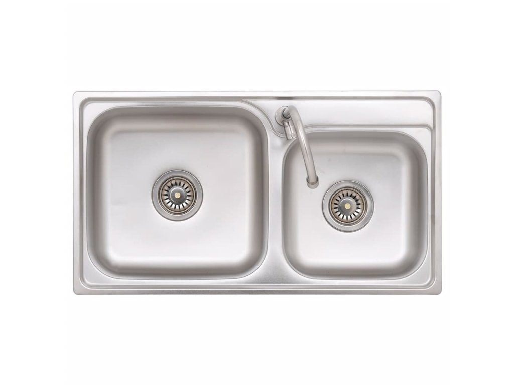 Kuchyňský dřez je vyrobený z nerezové oceli, takže je odolný proti poškrábání a nárazům, má velmi dlouhou životnost a je potravinářsky nezávadný. Zároveň se na něm neusazují nečistoty a nedělají se na něm skvrny, takže se snadno čistí. Dva extra hluboké dřezy je dostatečně prostorný pro mytí velkých pánví a většího nádobí. Dřez se navíc snadno přepravuje.