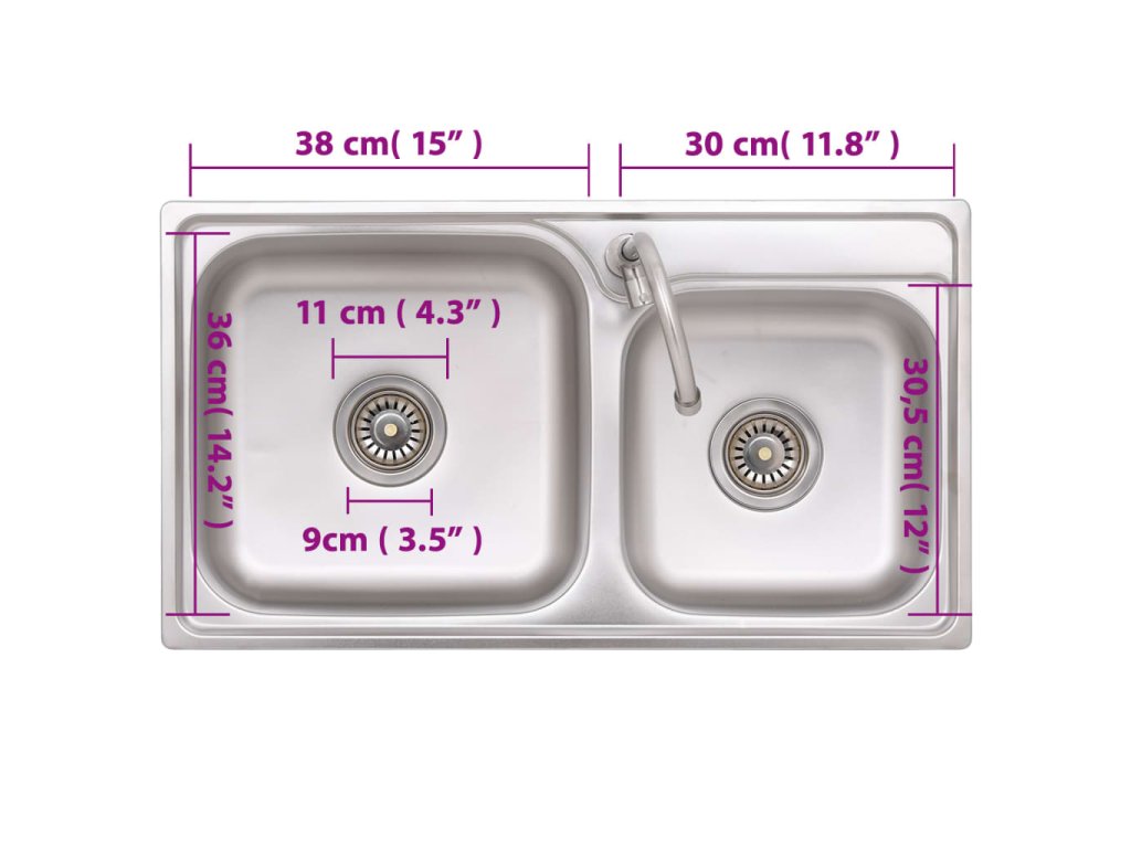vidaXL Kempingový dřez dvojitý s baterií nerezová ocel 151211