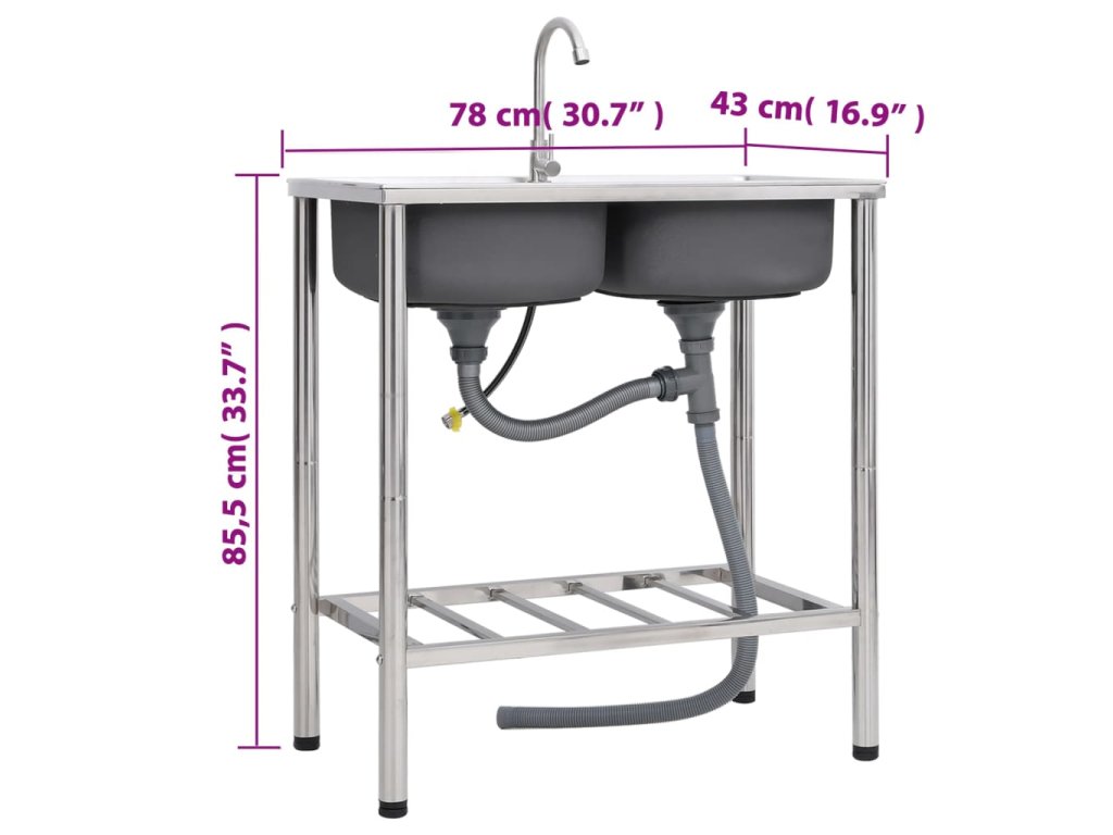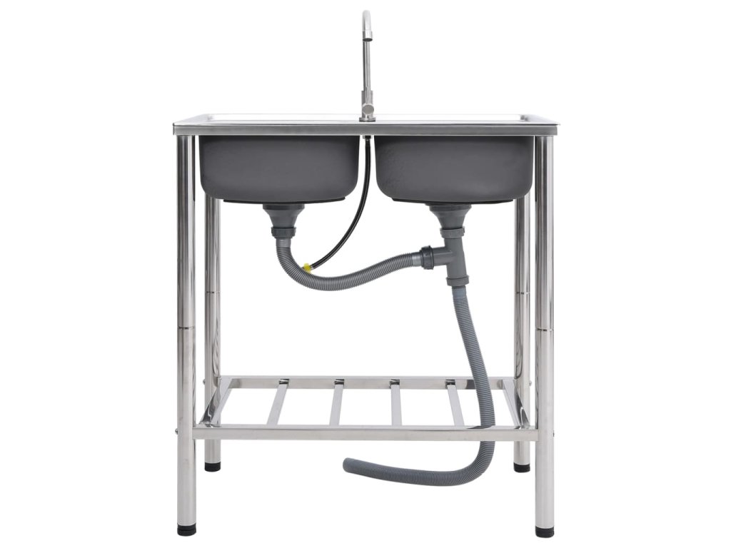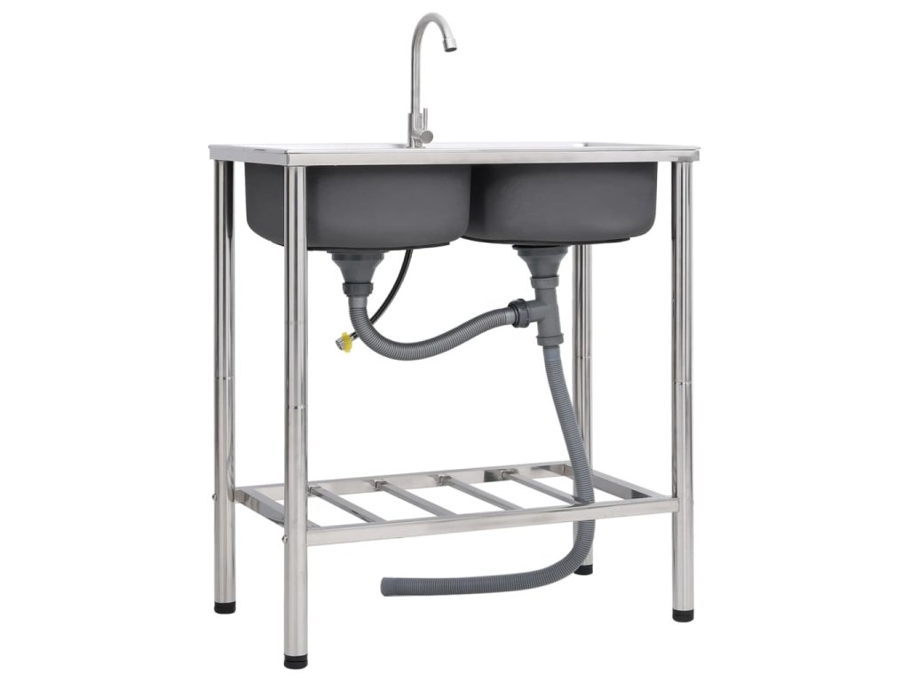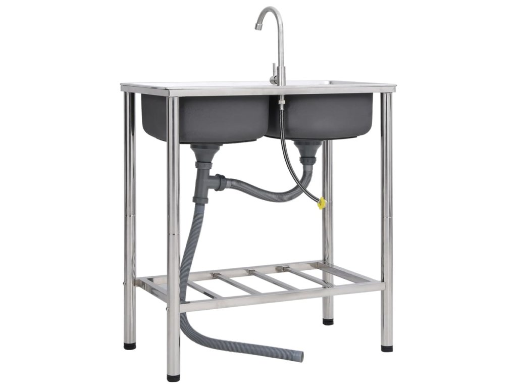 vidaXL Kempingový dřez dvojitý s baterií nerezová ocel 151212