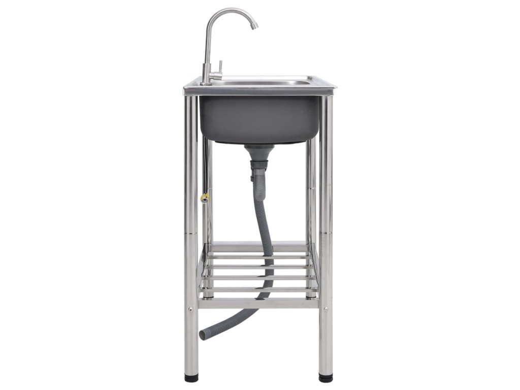 Tento kempingový dřez má dvě umyvadla s odkapávačem a kohoutkem a je perfektní volbou pro venkovní použití.