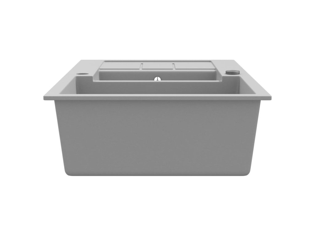 Tento dřez je zhotovený z vysoce kvalitního žulového kamene, jehož zásluhou je odolný vůči teplu, poškrábání a snadno se čistí. Dřez je souměrný, což znamená, že jej lze umístit na levou i pravou stranu. Otvor pro instalaci vodovodní baterie je již částečně navrtaný, stačí ho vyklepnout malým kladívkem nebo vhodnou trubkou. Součástí balení je též krtka z nerezové oceli, která chrání již provrtaný otvor na vodovodní baterii před zanesením špínou a prachem. Součástí balení je též sítko do dřezu.