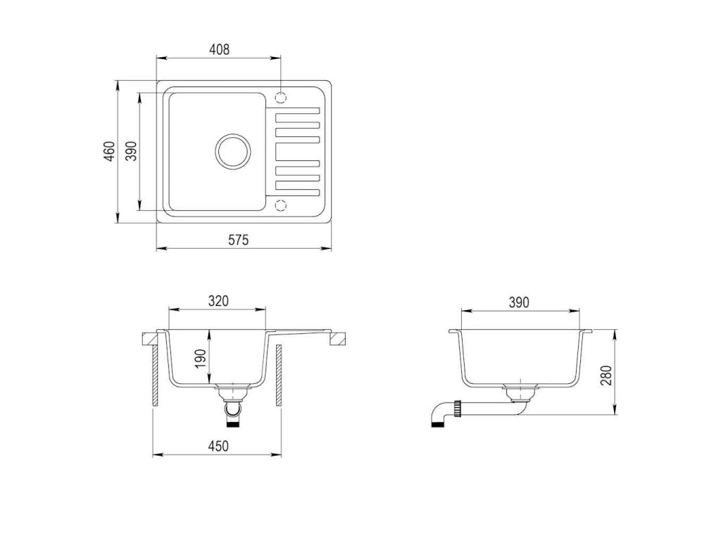 - Rozměry dřezu: 320 x 390 x 195 mm (D x Š x H)