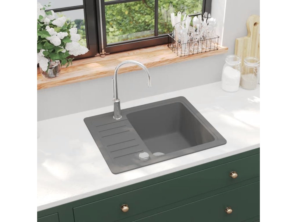vidaXL Kuchyňský dřez single žulový šedý 142953