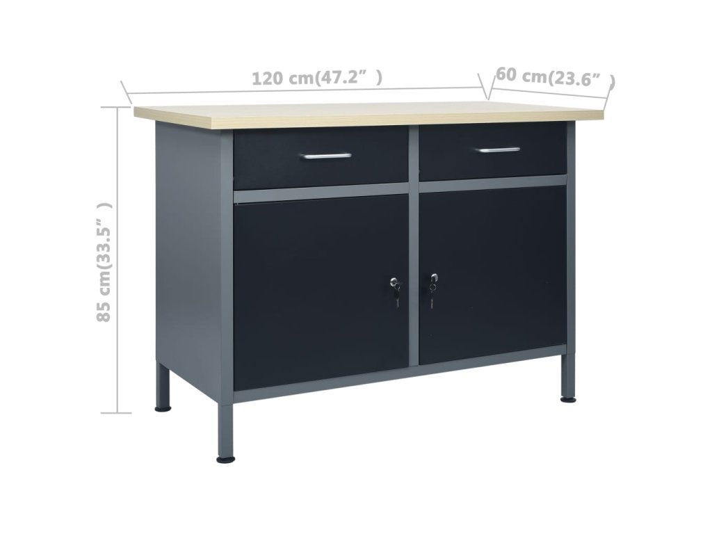 Velmi odolný pracovní stůl s velkým úložným prostorem má nosnost 500 kg. Tento pracovní stůl má 2 zásuvky, kam si můžete dobře uspořádat své nářadí, díly a příslušenství, jako jsou šrouby, hřebíky a lepicí pásky. Zásuvky jsou vybavené kuličkovými pojezdy pro snadné vysouvání a zasouvání. Pod nimi jsou 2 police a velká přihrádka za 2 uzamykatelnými dvířky pro větší nástroje, jako jsou vrtačky, bubny s kabely a brusky. Výškově nastavitelné nohy vám umožňují přizpůsobit si výšku stolu. Celý ponk je vyrobený z prvotřídní oceli a kompozitního dřeva, a proto je mimořádně robustní, má dlouhou životnost a snadno se čistí. Jeho sestavení je snadné.