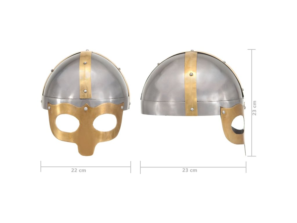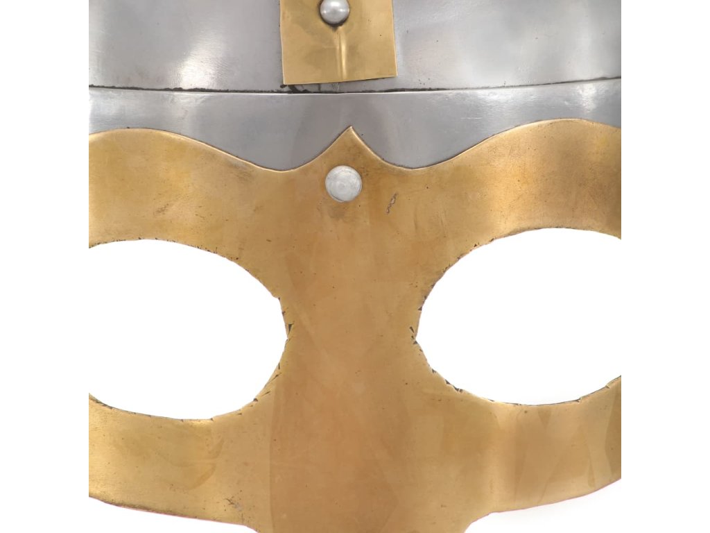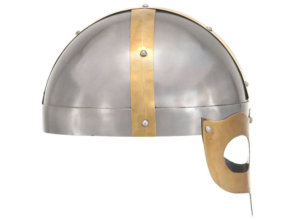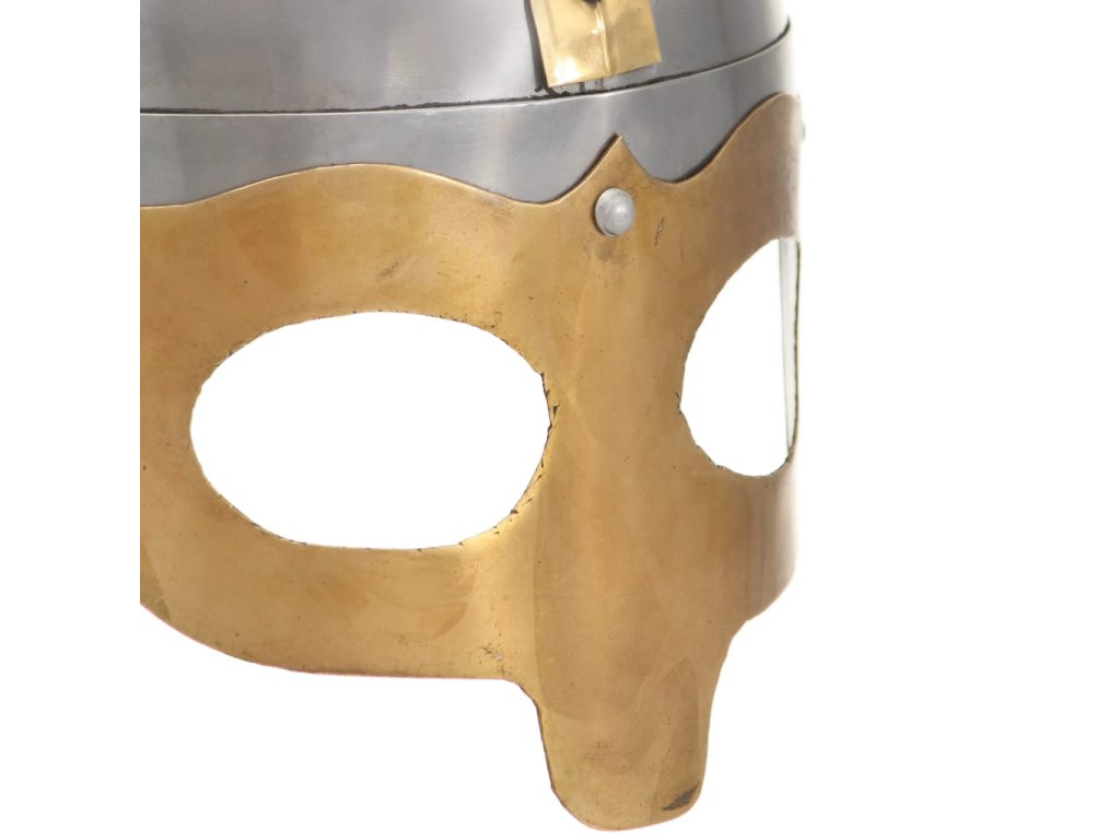 Přilba je replika původní vikingské přilby. Je zhotovená z oceli 18. Kombinací původního designu s odolným materiálem vznikla působivá přilba, která dokonale doplní vaši válečnickou výbavu. Naše půlkruhová helma s očnicemi a nánosníkem dobře chrání nos. Přilba je rovněž atraktivním dekorativním doplňkem do interiéru.