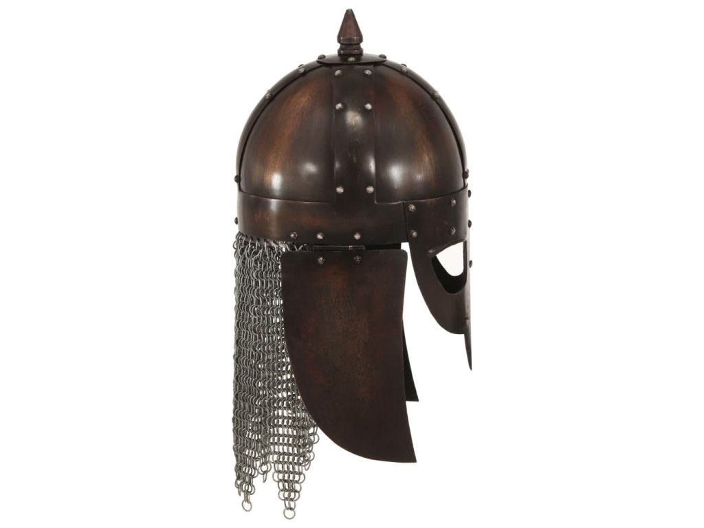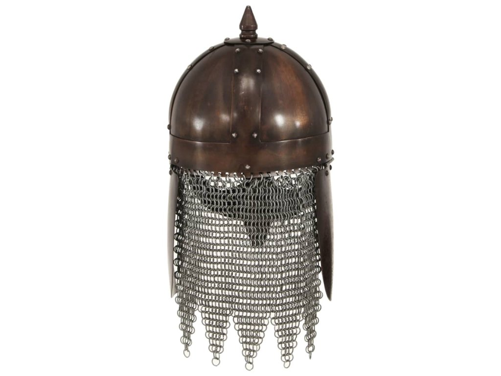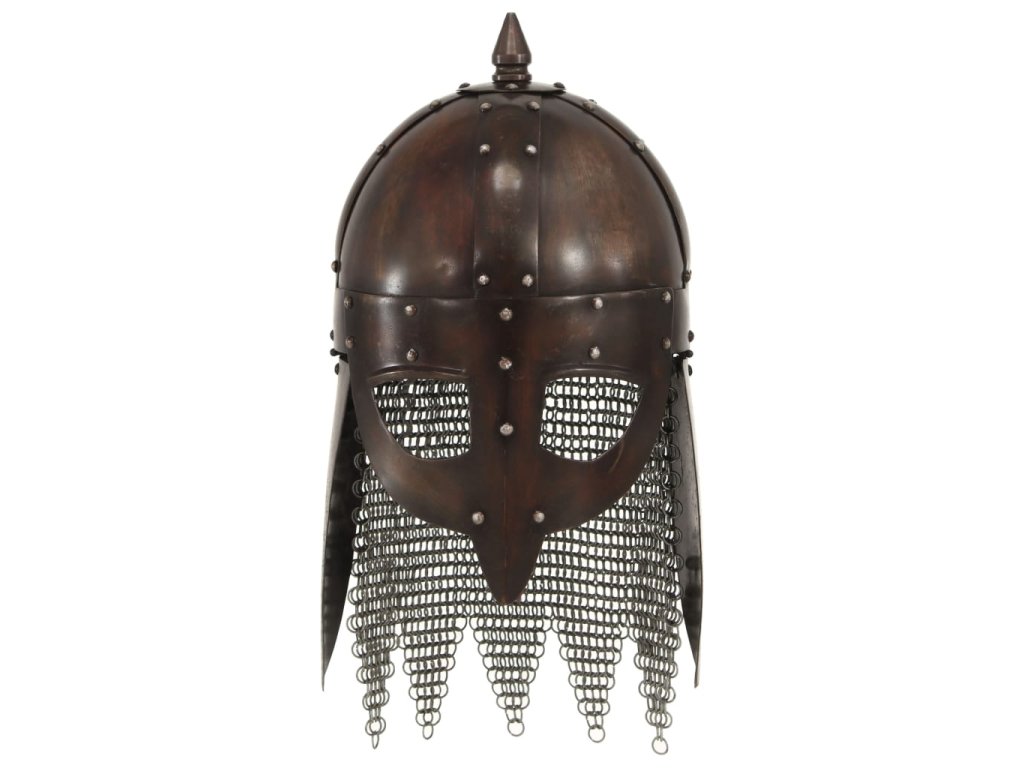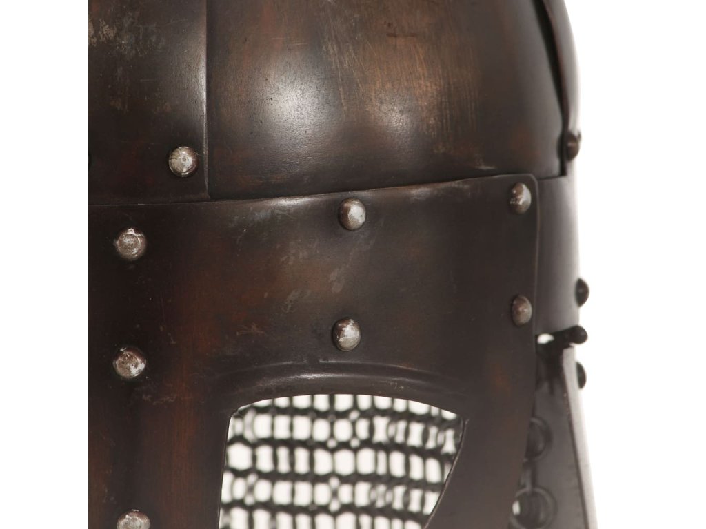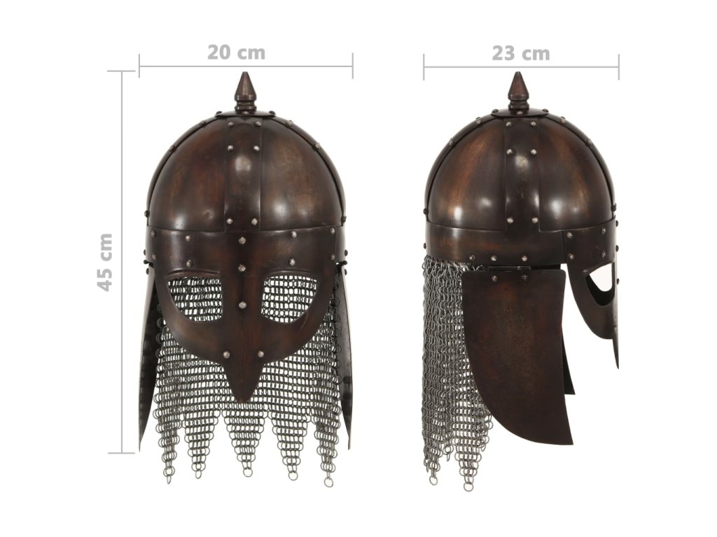 Historická přilba je přesná replika vikingské válečnické přilby. Je zhotovená z oceli 18. Kombinací původního designu s odolným materiálem vznikla působivá přilba, která dokonale doplní vaši válečnickou výbavu. Naše helma s nánosníkem, který je nýty upevněný na čelo, chrání také nos. Přilba je rovněž atraktivním dekorativním doplňkem do interiéru.