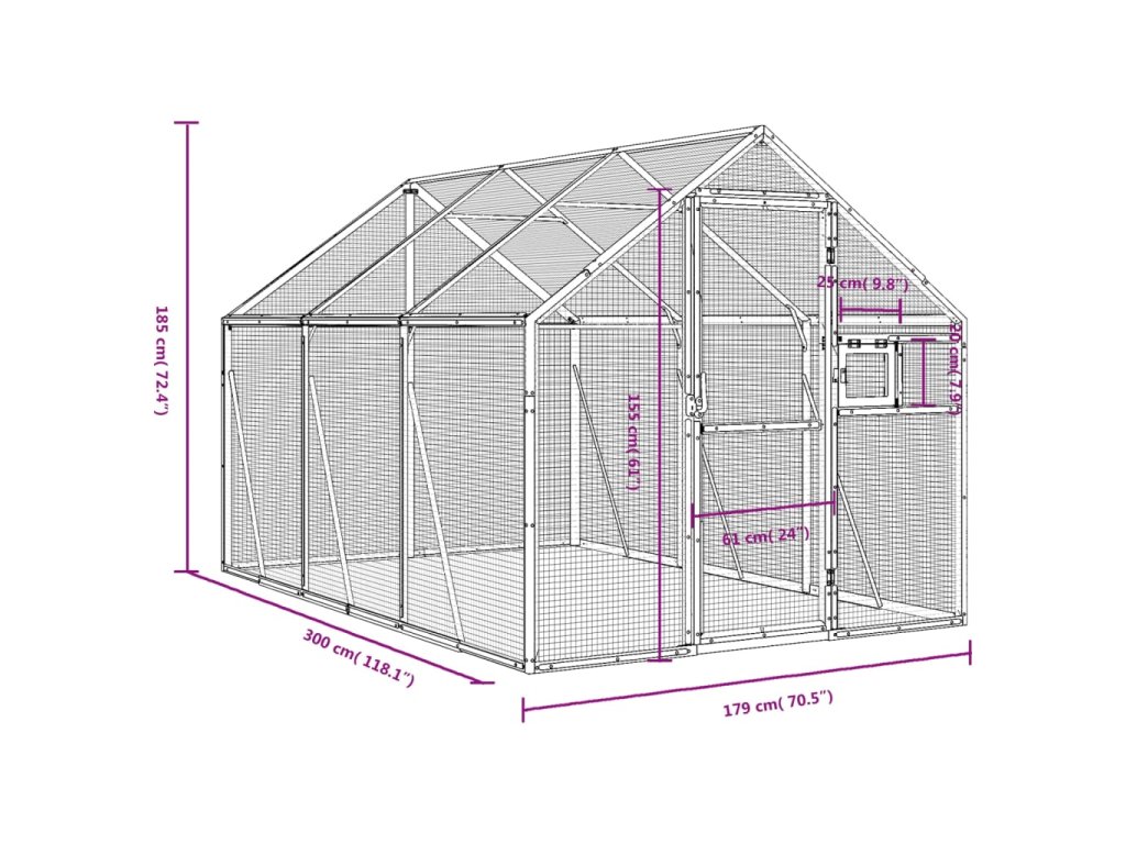 - Odolný materiál: Hliníkový kov je lehký a pevný. Je odolný proti korozi díky samoochranné oxidové vrstvě. Tato ptačí voliéra má robustní hliníkovou konstrukci a je vyrobena tak, aby velmi dlouho vydržela.