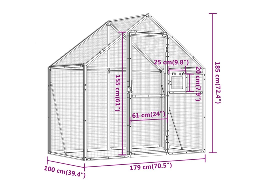 - Odolný materiál: Hliníkový kov je lehký a pevný. Je odolný proti korozi díky samoochranné oxidové vrstvě. Tato ptačí voliéra má robustní hliníkovou konstrukci a je vyrobena tak, aby velmi dlouho vydržela.