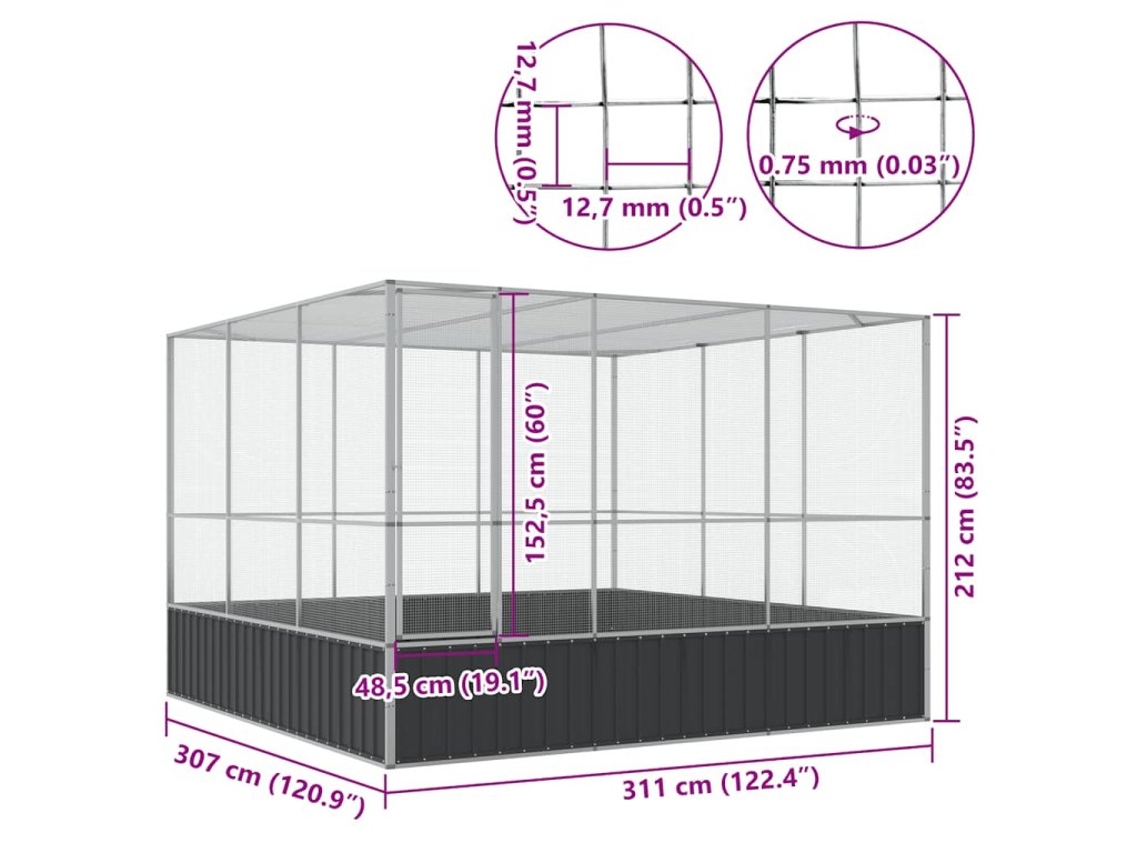 Voliéra stříbrná 311 x 307 x 212 cm ocel 172586