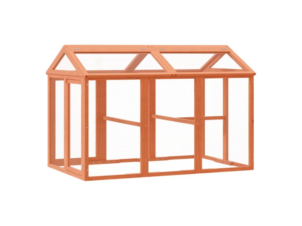 - Snadné čištění: Střecha a boční dvířka venkovní voliéry se hladce otevírají, což usnadňuje čištění.