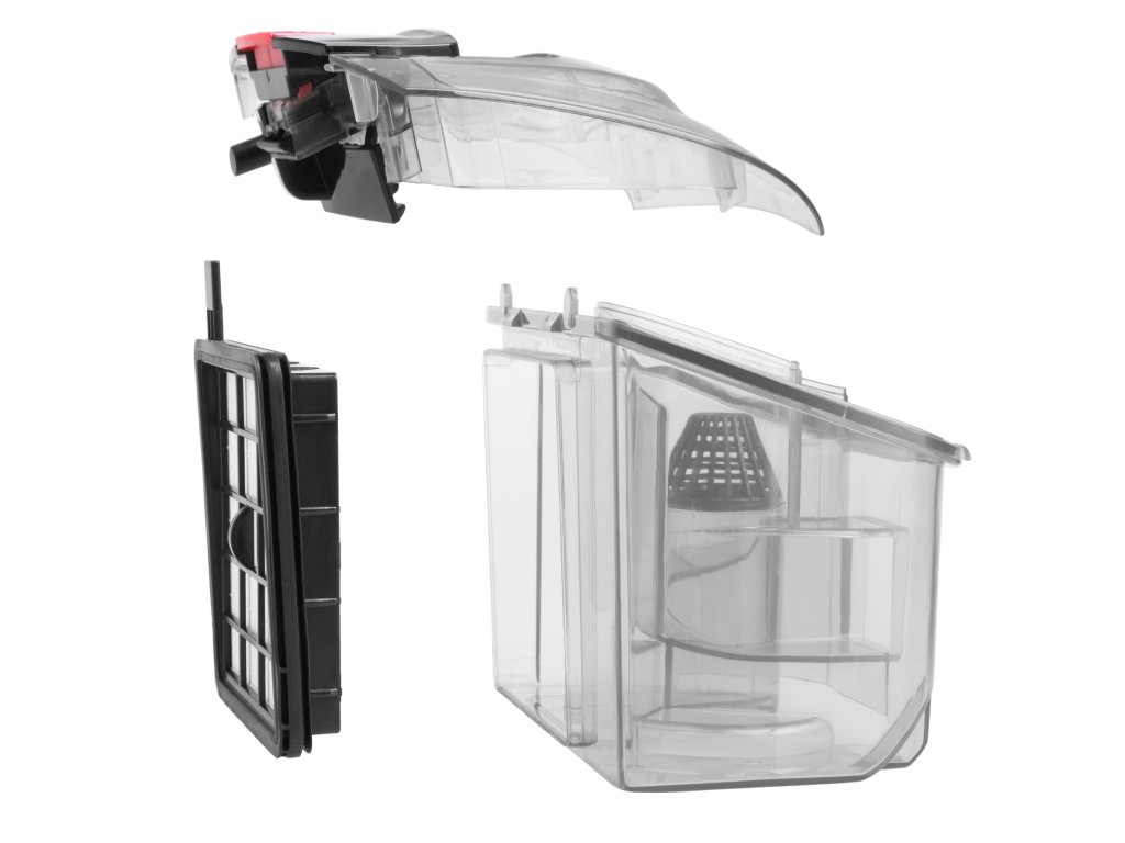 Díky technologii vířivého proudění bez nutnosti sáčků ušetříte na výměnných filtrech a čištění je rychlé a jednoduché. 6stupňový filtrační systém s omyvatelným HEPA filtrem zachytí i jemné prachové částice a zajistí čistý vzduch v domácnosti.